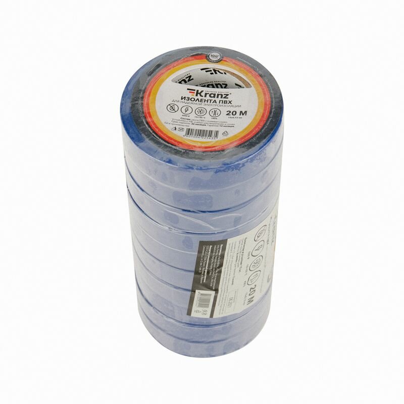 KRANZ Изолента ПВХ 15 мм х 20 м 0.13 мм синяя KR-09-2605