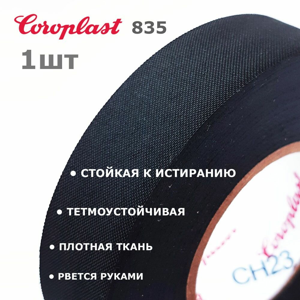Coroplast 835, 1шт, износостойкая ткань без ворса, изолента рвется руками, 25 метров / 19мм интересное: