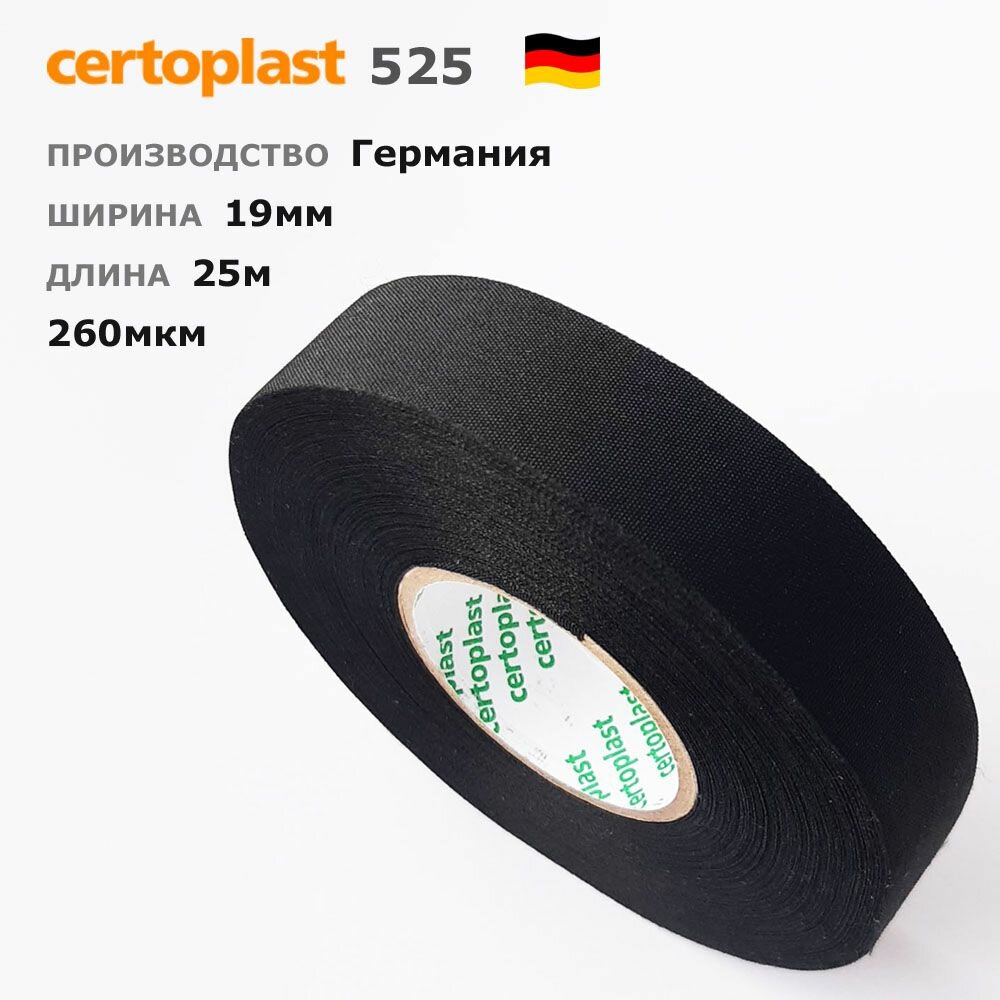 Certoplast 525SE, 1шт, 25 метров, 19мм, t-150*, лавсановая ПЭТ-ткань, матерчатая изолента интересное: