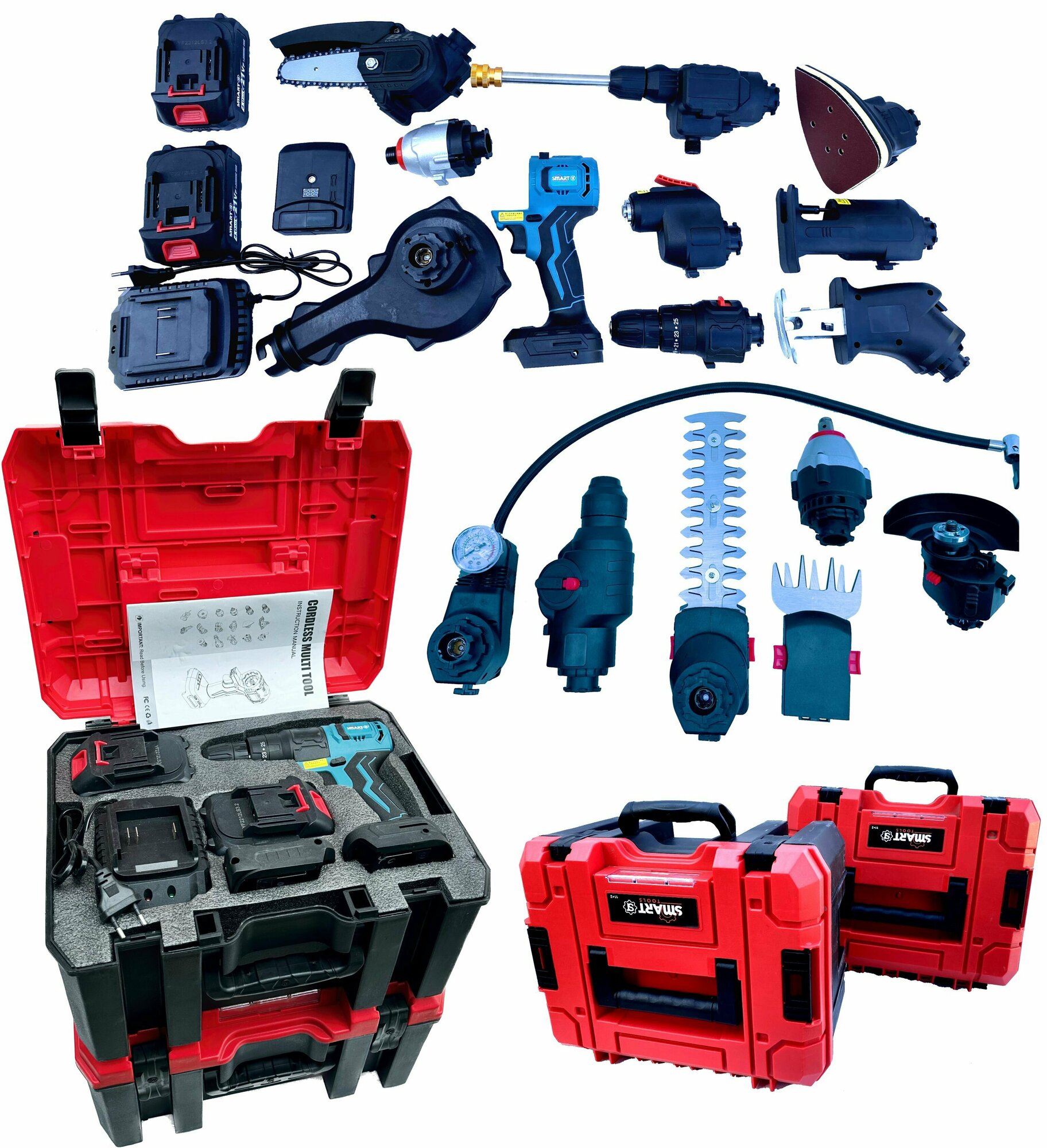 | Инструмент в наборе | вибрационная шлифмашина / гайковерт / дельташлифмашина / дисковая пила / дрель-шуруповерт / лобзик / многофункциональный инстумент / перфоратор / плоскошлифовальная машина / полировальная машина / пылесос / сабельная пила / угловая шлифмашина / фонарь / цепная пила / шлифмашина / шуруповерт / электрические ножницы |