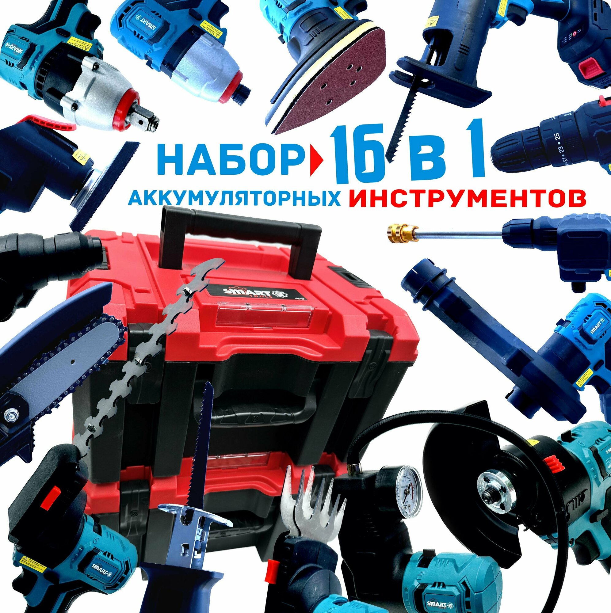 Набор 16 в 1 аккумуляторных Инструментов 2 батареи кейс 21V (Li-ion) 4,0 A/ч интересное: