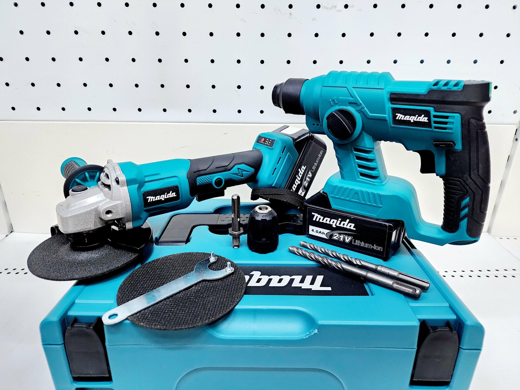 Купить Набор аккумуляторного инструмента Magida 2 в 1 JL2-20+JL98M (перфоратор, ушм), 21В, 4Ач, кейс