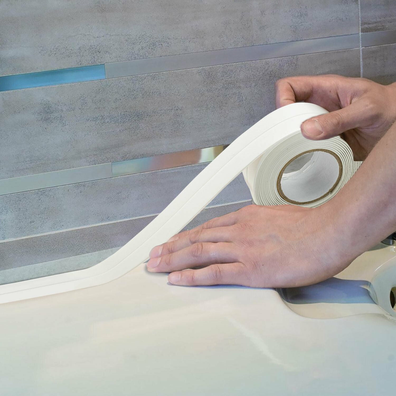 Бордюрная лента для ванны и кухни самоклеящаяся водонепроницаемая белая, 38 мм х 3,35 м, акриловая основа, Laima, 608772 интересное: