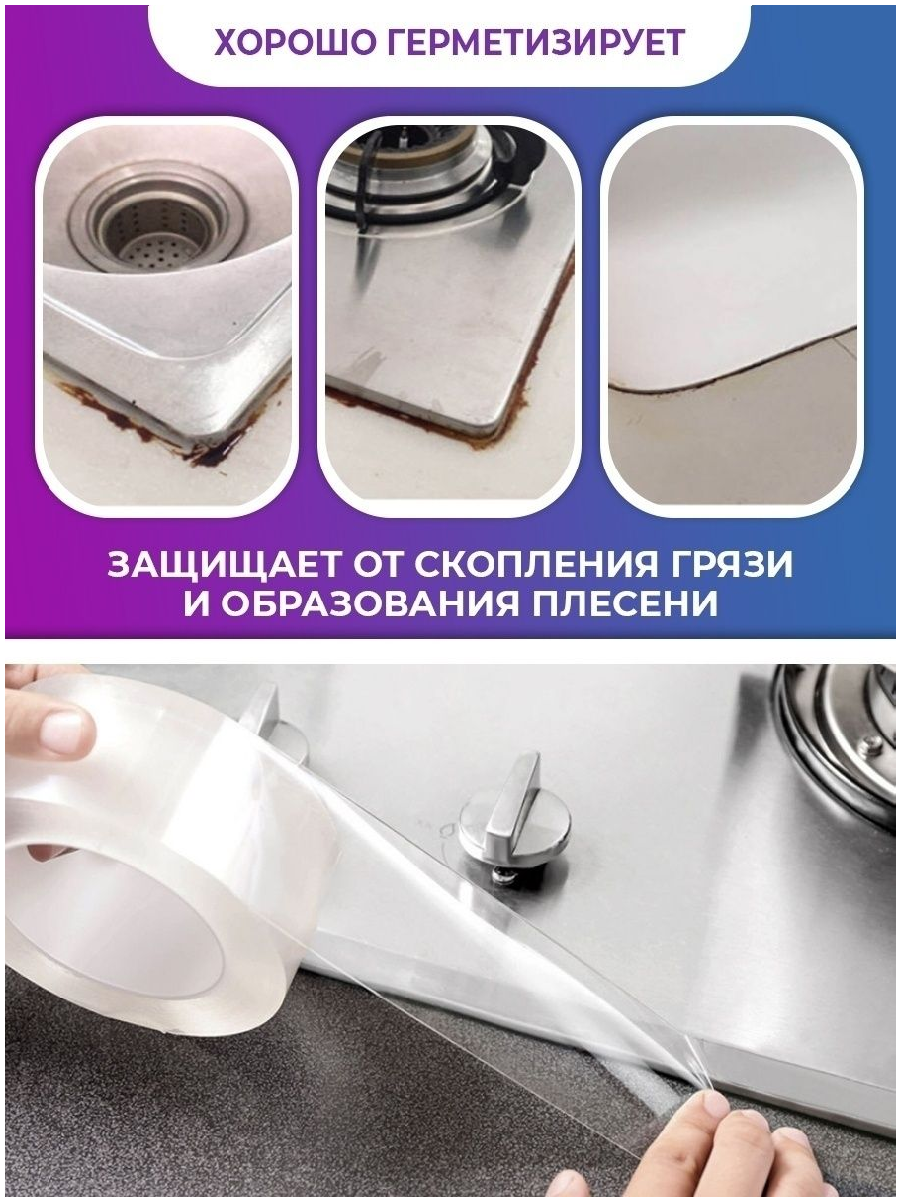 Защитная бордюрная лента для ванны, кухни, раковины, плиты. Прозрачная самоклеящаяся водостойкая клейкая лента длина 3 м. ширина 3 см. интересное:
