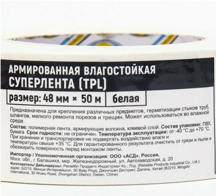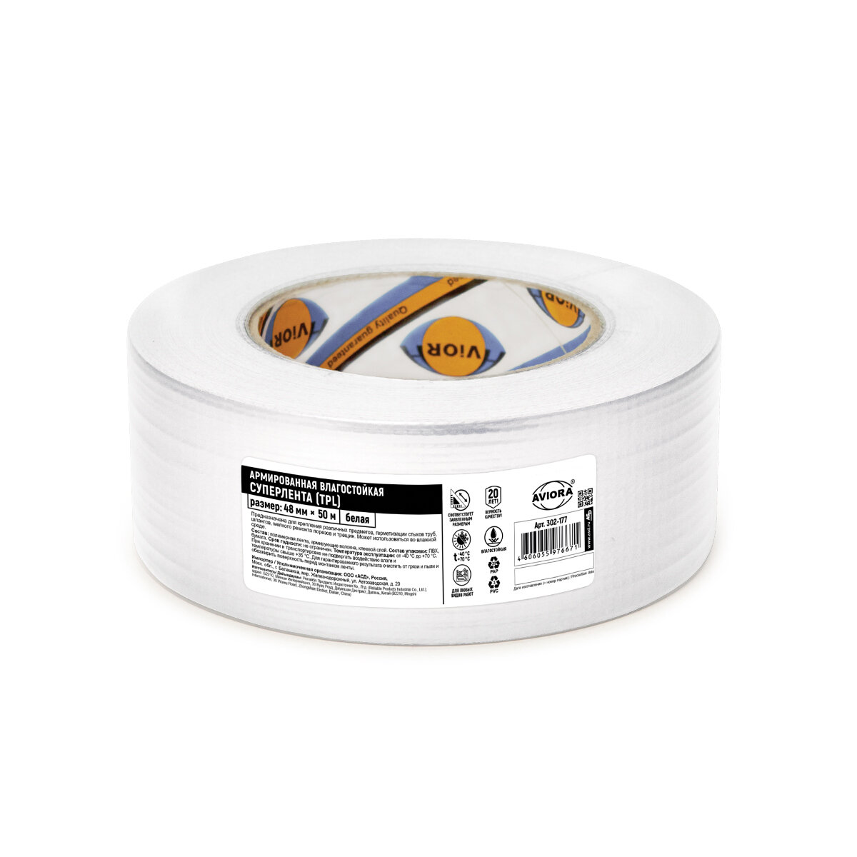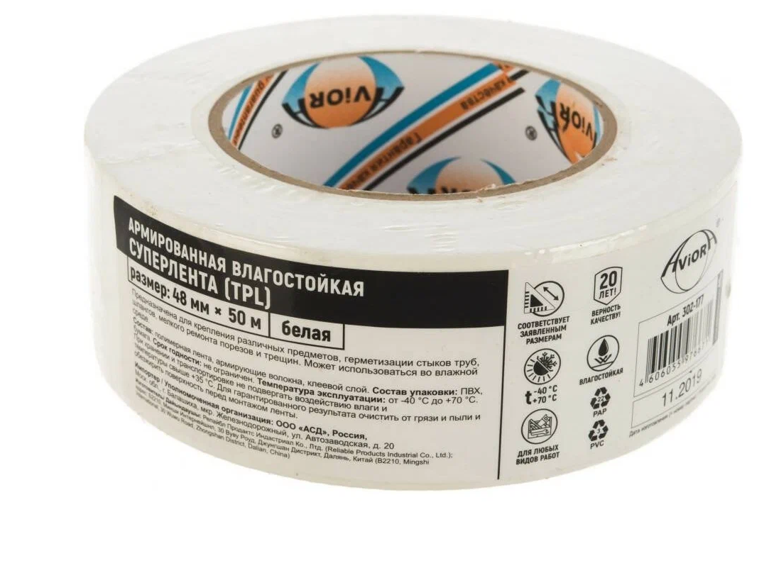 Армированная влагостойкая клейкая белая Супер лента TPL Aviora, 48мм х 50м белая 1 шт интересное: