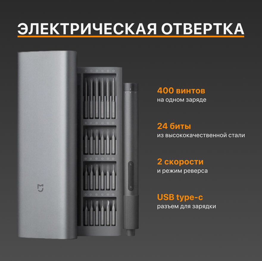 Аккумуляторная отвертка XIAOMI Electric Precision Screwdriver Kit интересное: