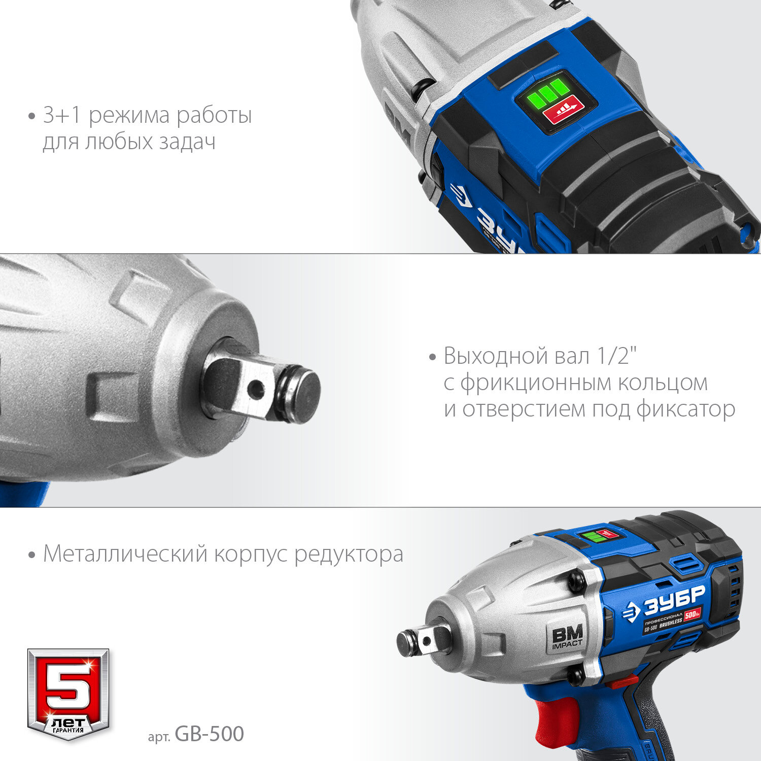 Бесщеточный гайковерт ЗУБР Профессионал т7 20 В, 500 Нм, без акб GB-500 интересное:
