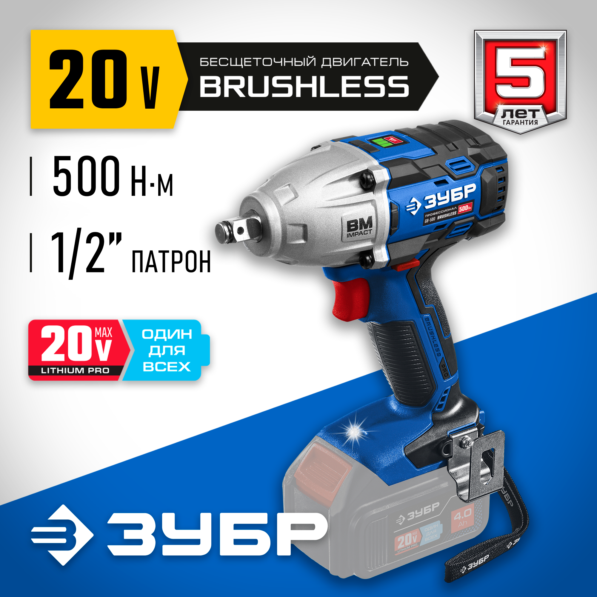 Бесщеточный гайковерт ЗУБР Т7, 20 В, 500 Нм, без АКБ и ЗУ интересное: