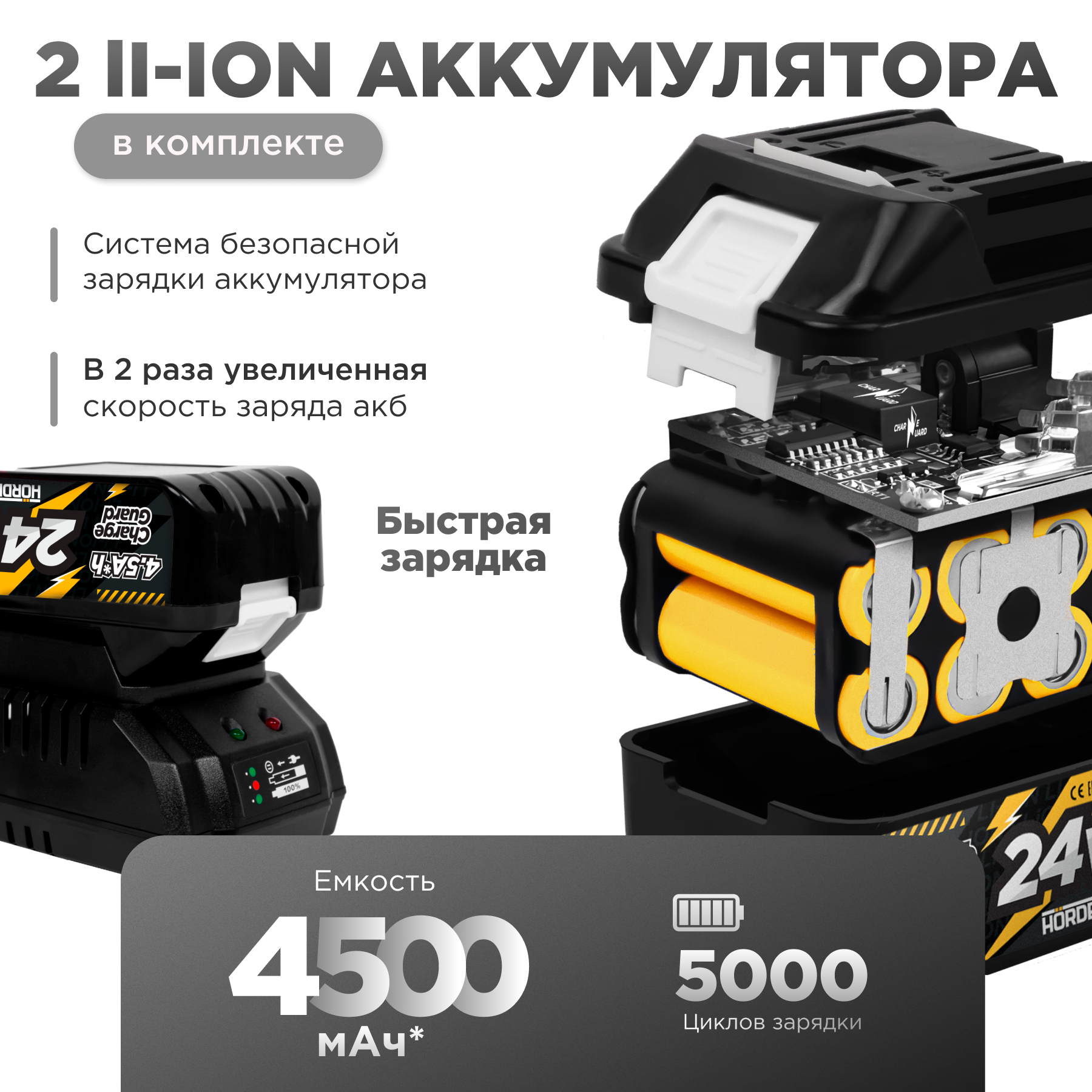 Гайковерт аккумуляторный HORDER HW-700 Li2 бесщеточный ударный, 24 В, 3,5 Ач, 2 аккумулятора в комплекте, кейс с оснасткой
