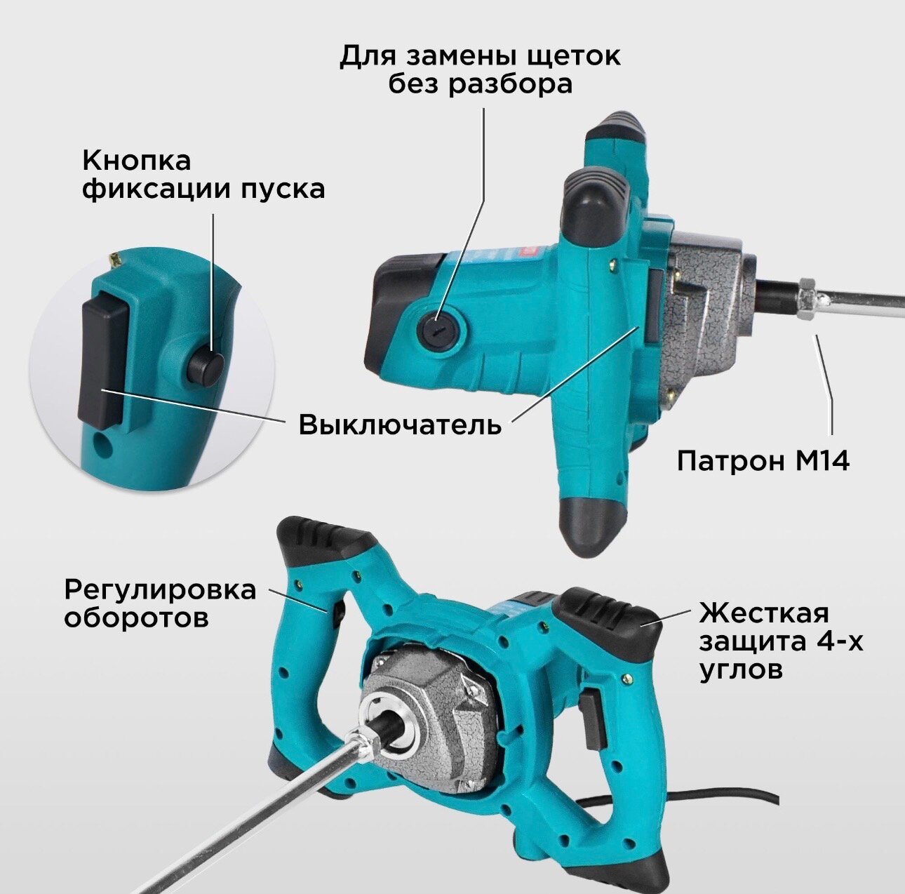 | Особенности конструкции | блокировка кнопки включения |
