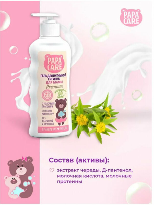 Гель для интимной гигиены Papa Care, молочная кислота, пантенол, 250 мл интересное: