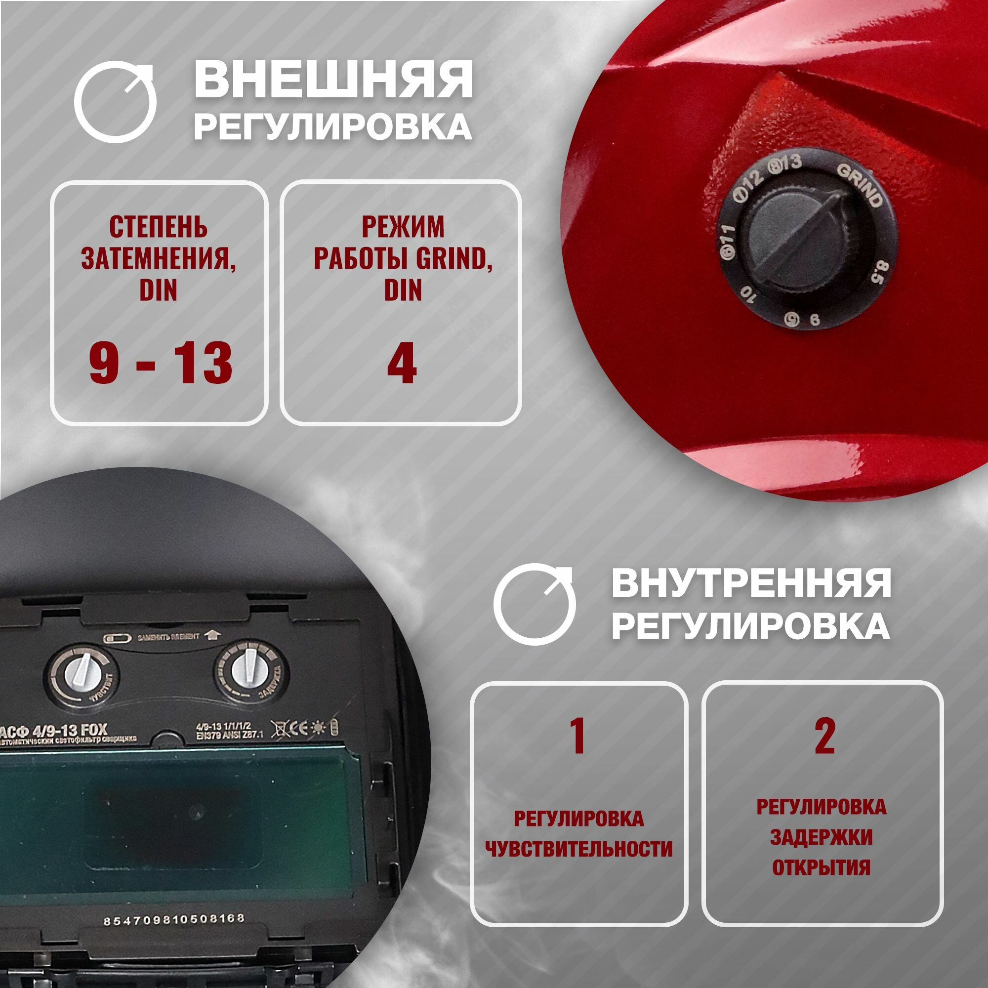 Маска сварщика FOX 3 "бургунь" с фильтром "хамелеон" (Ф-Р АСФ 4/9-13 со внешней и внутренней регулировкой) интересное: