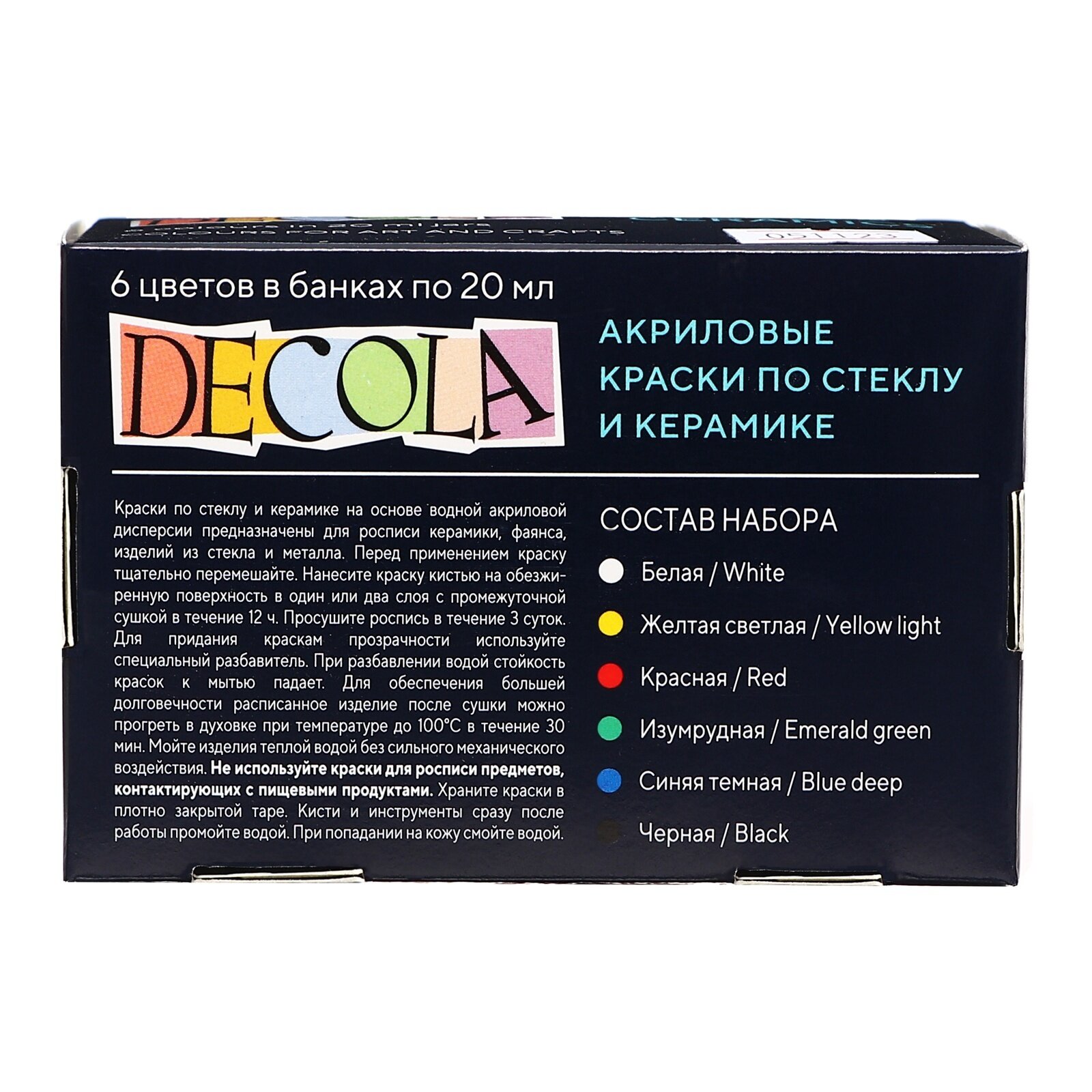 | Комплектация | Краски для стекла и керамики Decola, акриловые, 6 цветов по 20 мл, 1 уп |