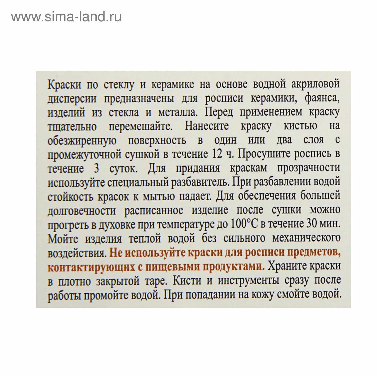 | Вид краски | необжигаемые |