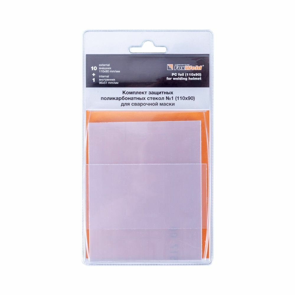 Купить FoxWeld Комплект поликарбонатных стекол №1 (10 внешних 110х90мм, 1 внутреннее 96х51мм, для масок Корунд/Комета/Искра)