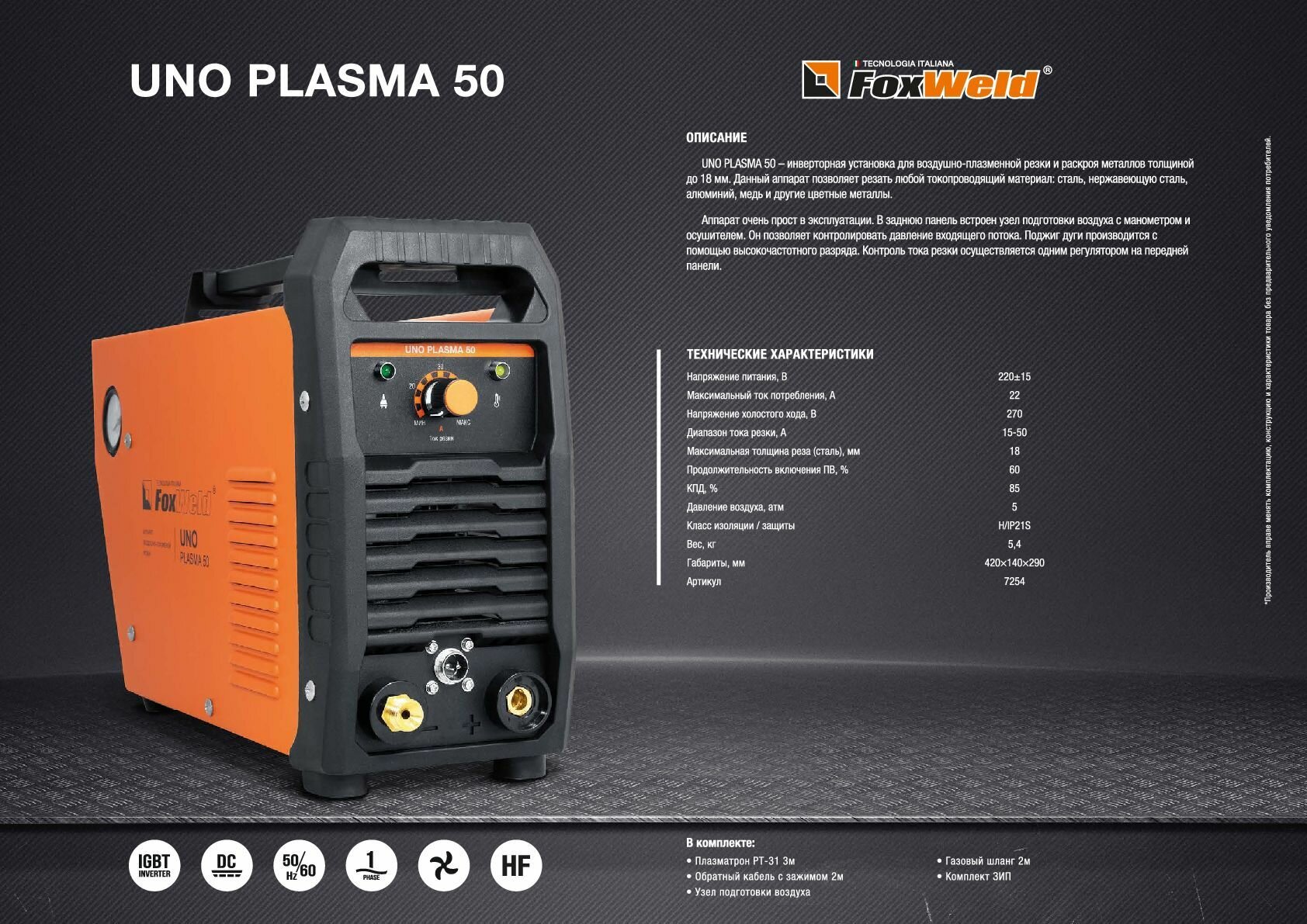 Аппарат плазменной резки FoxWeld UNO PLASMA 50 (макс. толщина реза 18мм)