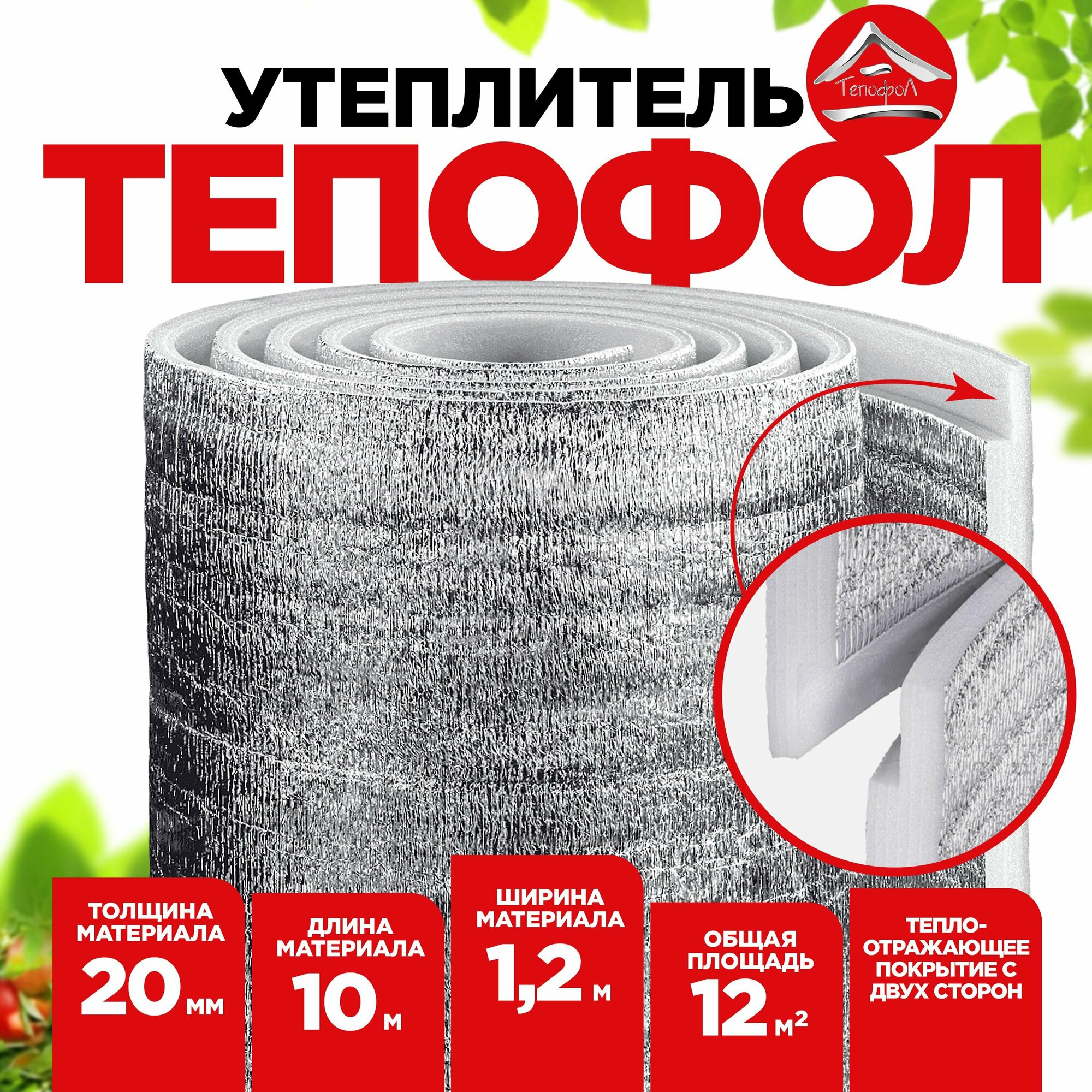 Тепофол "В" 1050*10000* 20мм металлизированный с замком(двухсторонний),10,5М2, размер рулона 1140*560мм интересное: