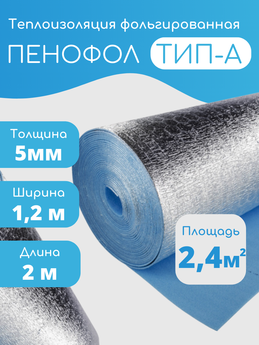 Утеплитель фольгированный Пенофол 2000 А, 5мм, 1,2*2м (2.4 кв.м), односторонний интересное: