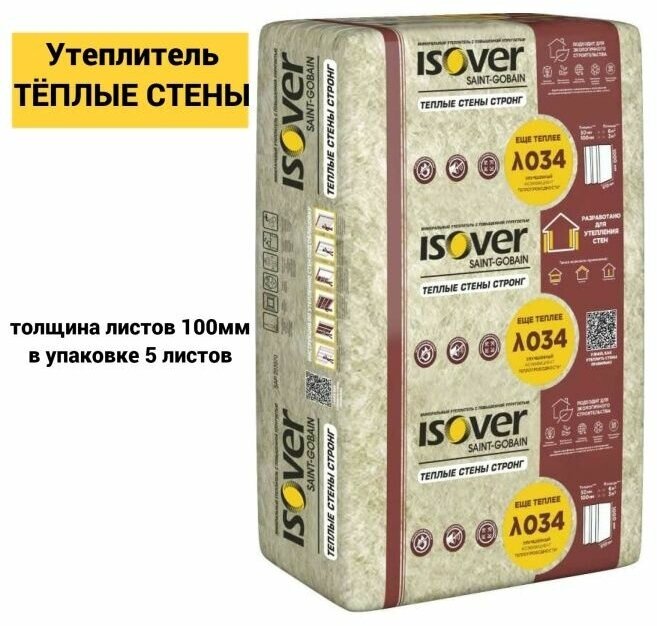 Утеплитель в плитах изовер теплые стены стронг 3,05 кв.м 100x610x1000 мм интересное: