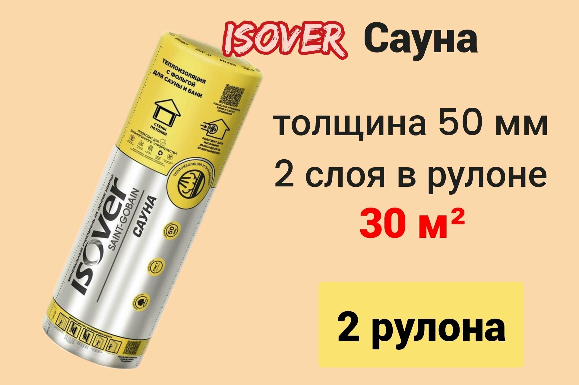 Утеплитель и пароизоляция Isover Сауна, 12500х1200х50 мм, 15 м2 / Утеплитель для бани Изовер Сауна 2 рулона интересное: