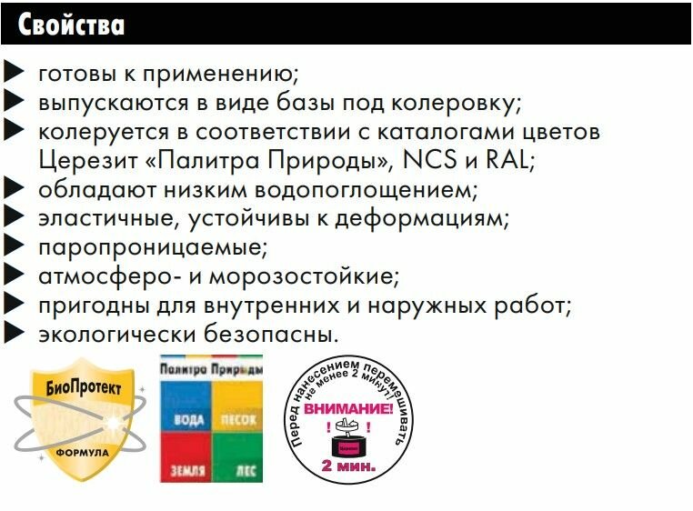 | Особенности | влагостойкий / для подготовленных поверхностей / колеруется / морозостойкий / паропроницаемая / теплоизоляционная / фасадный |