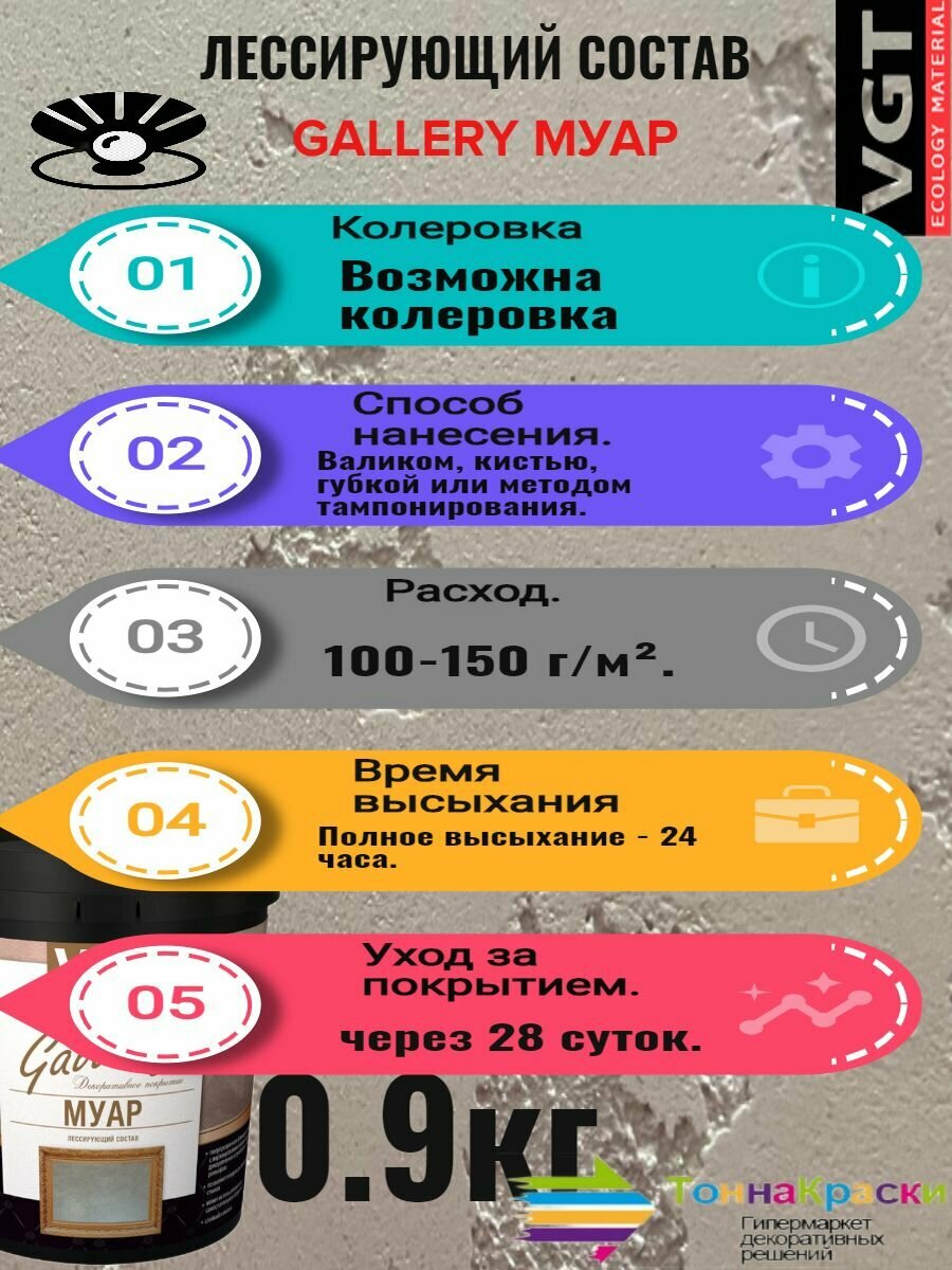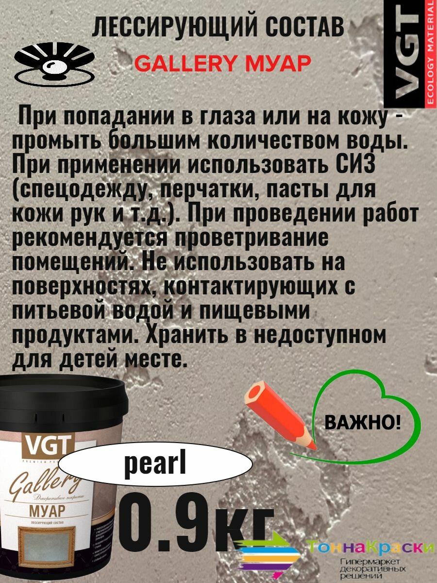 Лессирующий Состав Муар VGT Gallery 0.9кг Pearl с Перламутром, Полупрозрачный / ВГТ Муар.