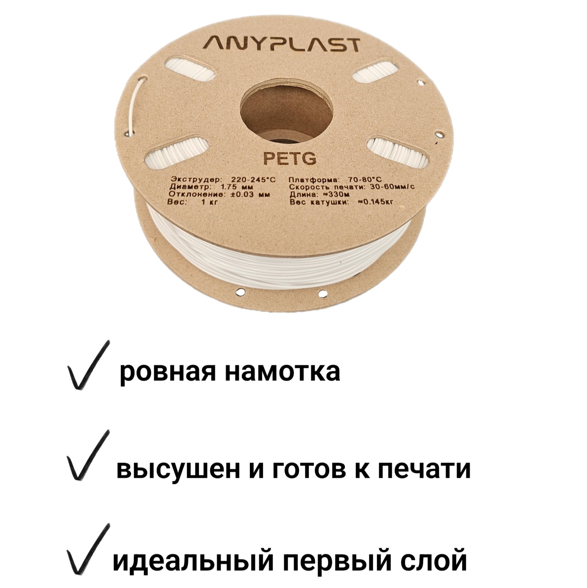 Пластик для 3д-печати Anyplast PETG, 1кг, белый интересное: