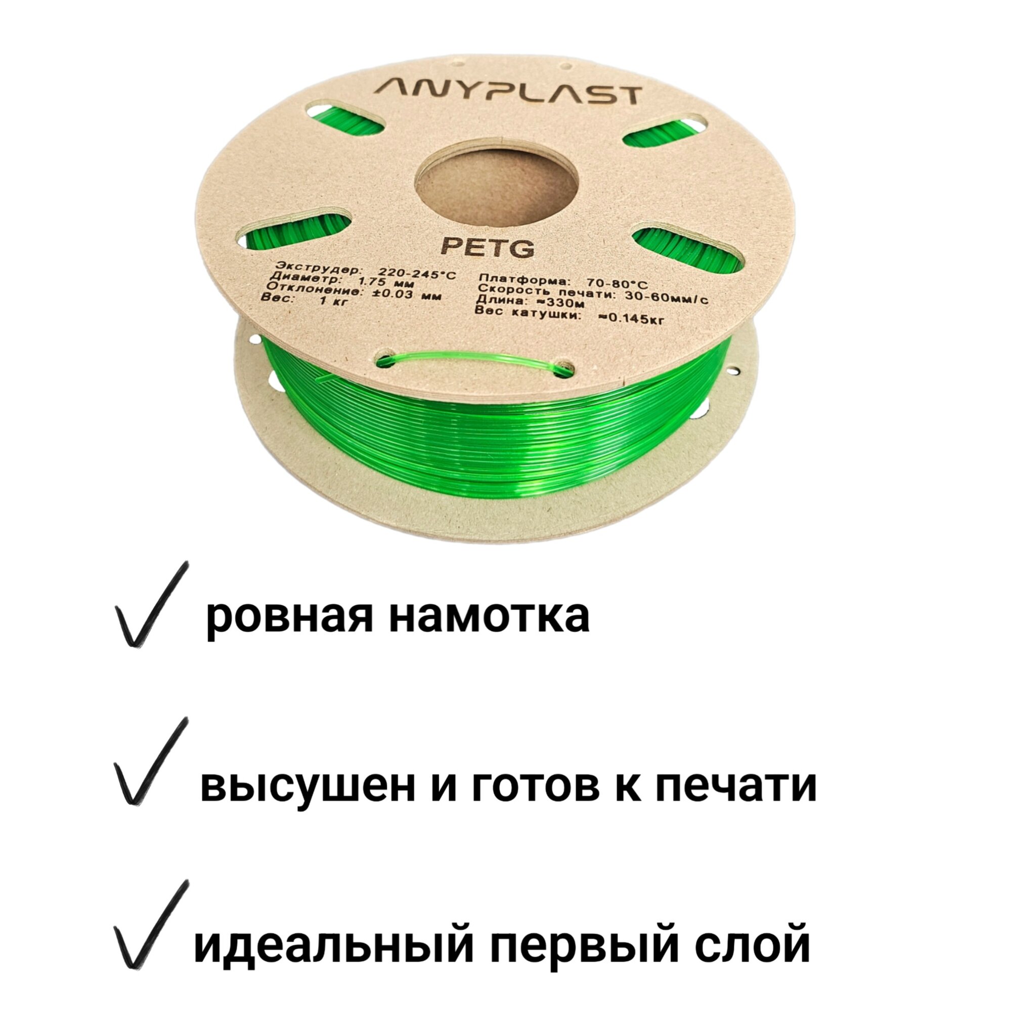 Пластик для 3д-печати Anyplast PETG, 1кг, зелёный интересное:
