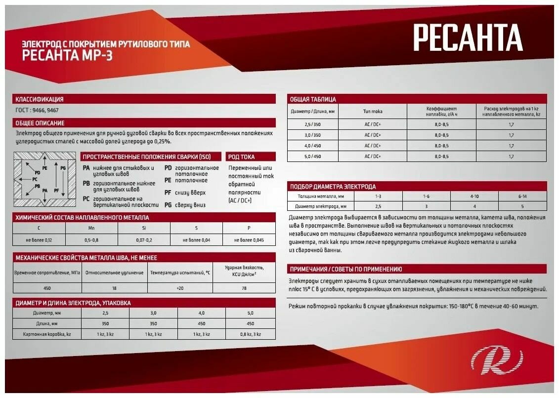 Электроды Ресанта МР-3 D2мм L350мм 1000гр (71/6/48) интересное: