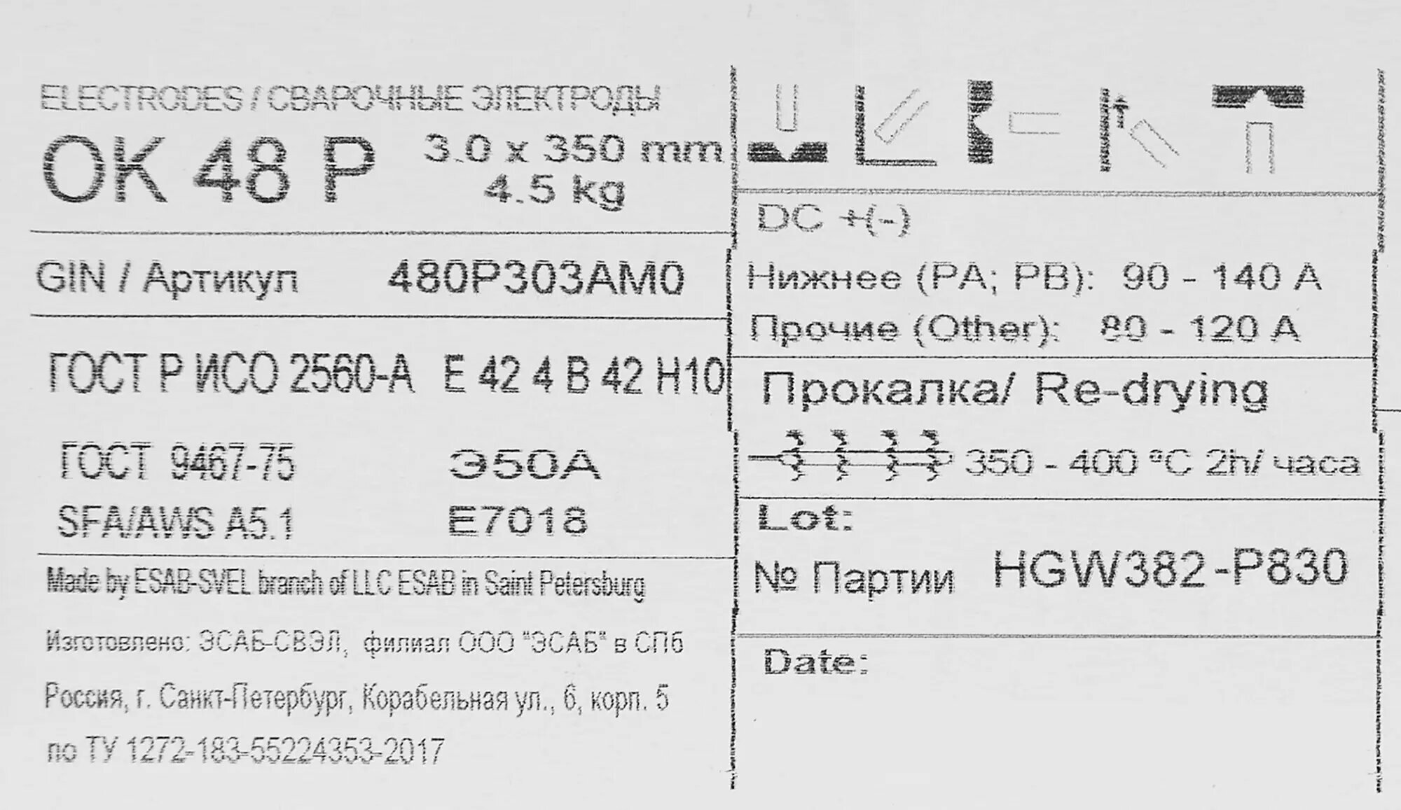 Электрод OK 48P d.3.0mm 4,5кг (арт 480P303AE0 )