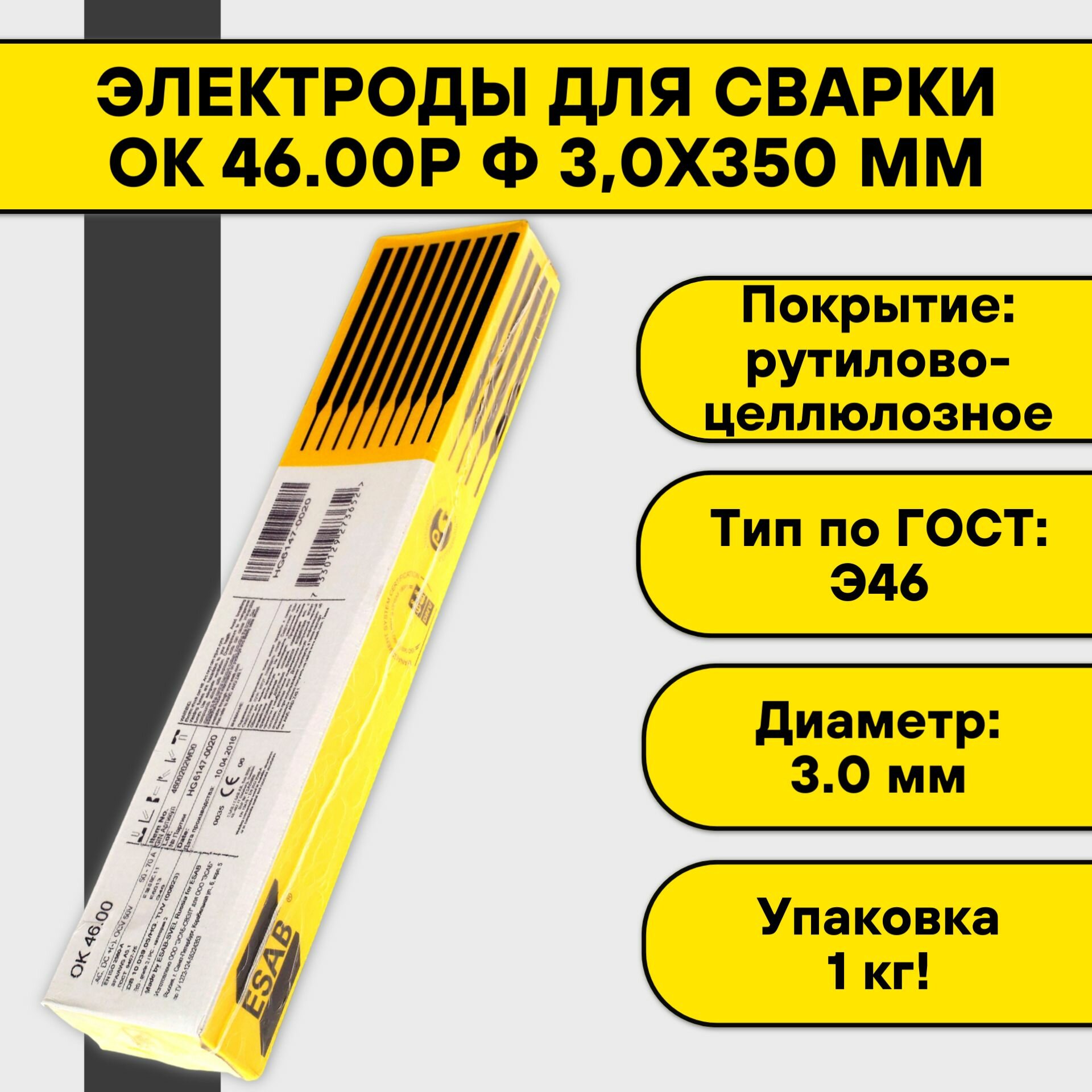 Электроды / Электроды сварочные ОК 46.00Р 3,0х350мм (2,5 кг)