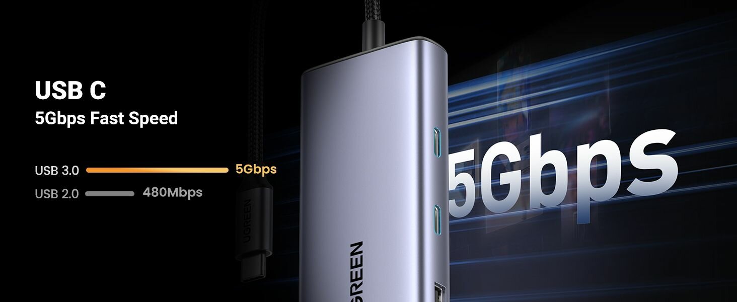Конвертер UGREEN CM498 (15375) USB-C to 2штUSB3.0+2штUSB-C+HDMI+RJ45+SD&TF+PD port интересное: