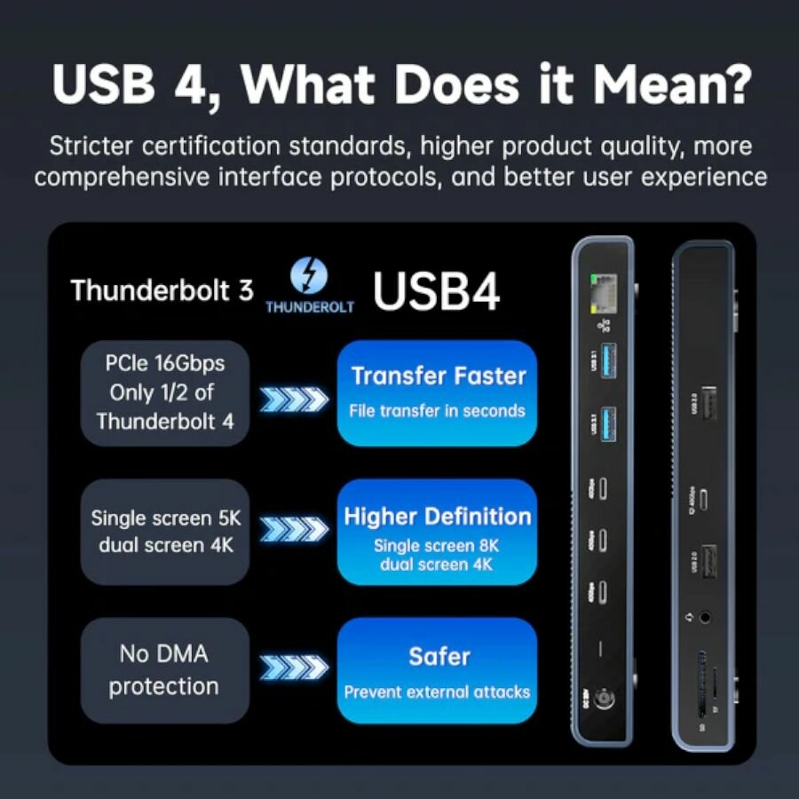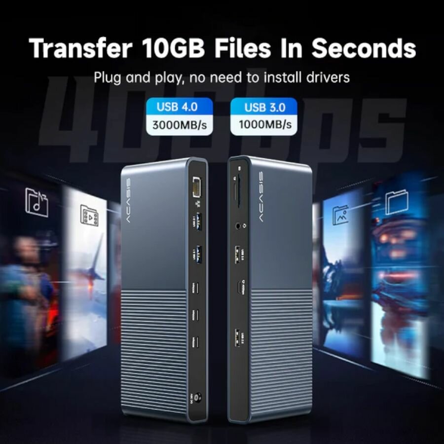 Док-станция 13-в-1 Acasis DS-9002 Thunderbolt 4 USB-C Pro с тремя портами 40 Гбит/с, 8K, PD 60 Вт интересное: