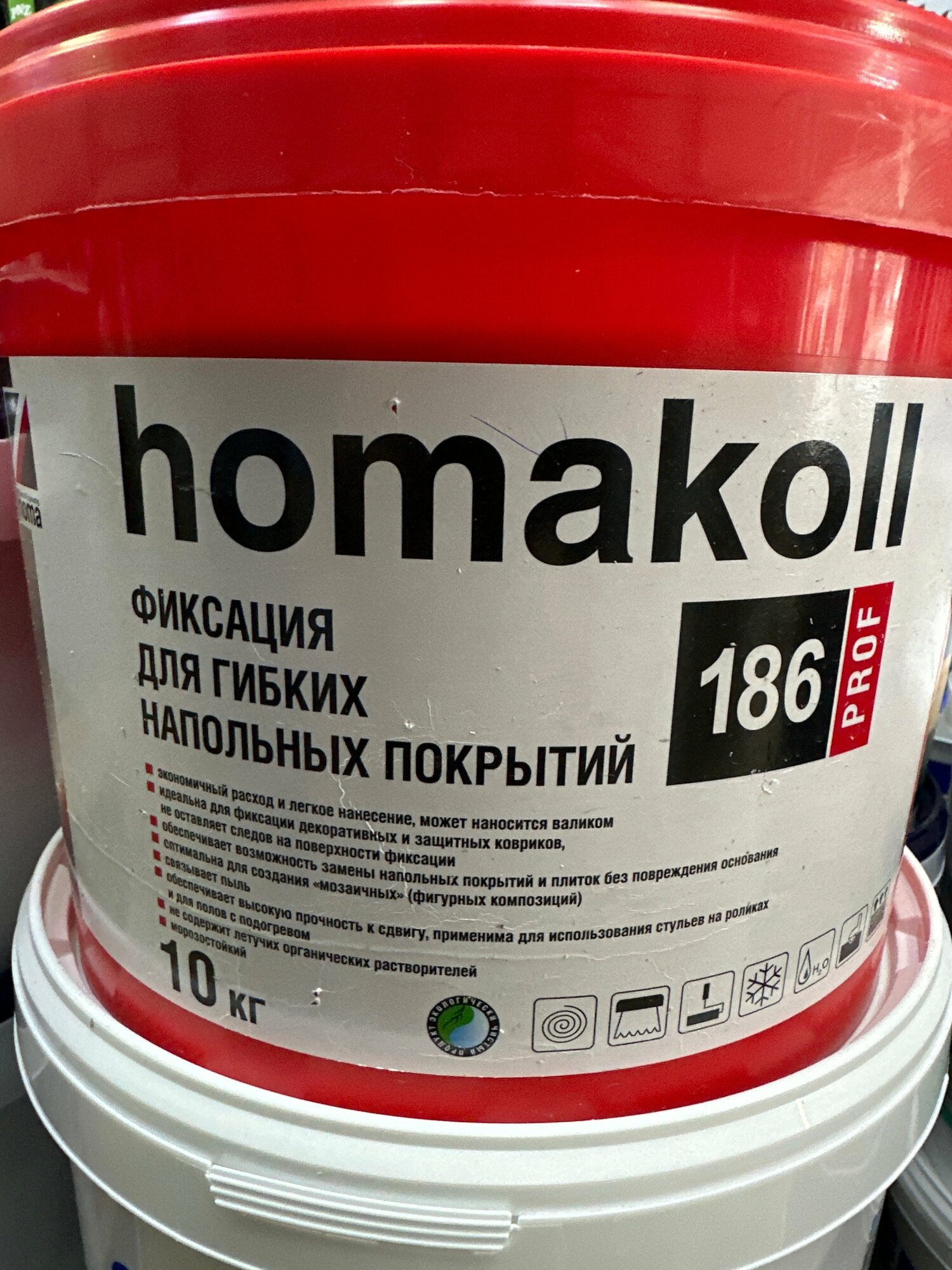 Клей акриловый для гибких напольных покрытий Homa Homakoll 186 Prof фиксатор 10 кг