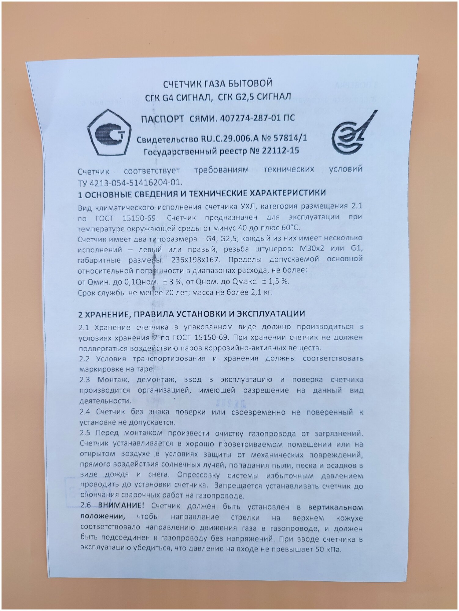Счетчик газа СГК-G4 Сигнал М30*2 (под Владимир), справа-налево интересное: