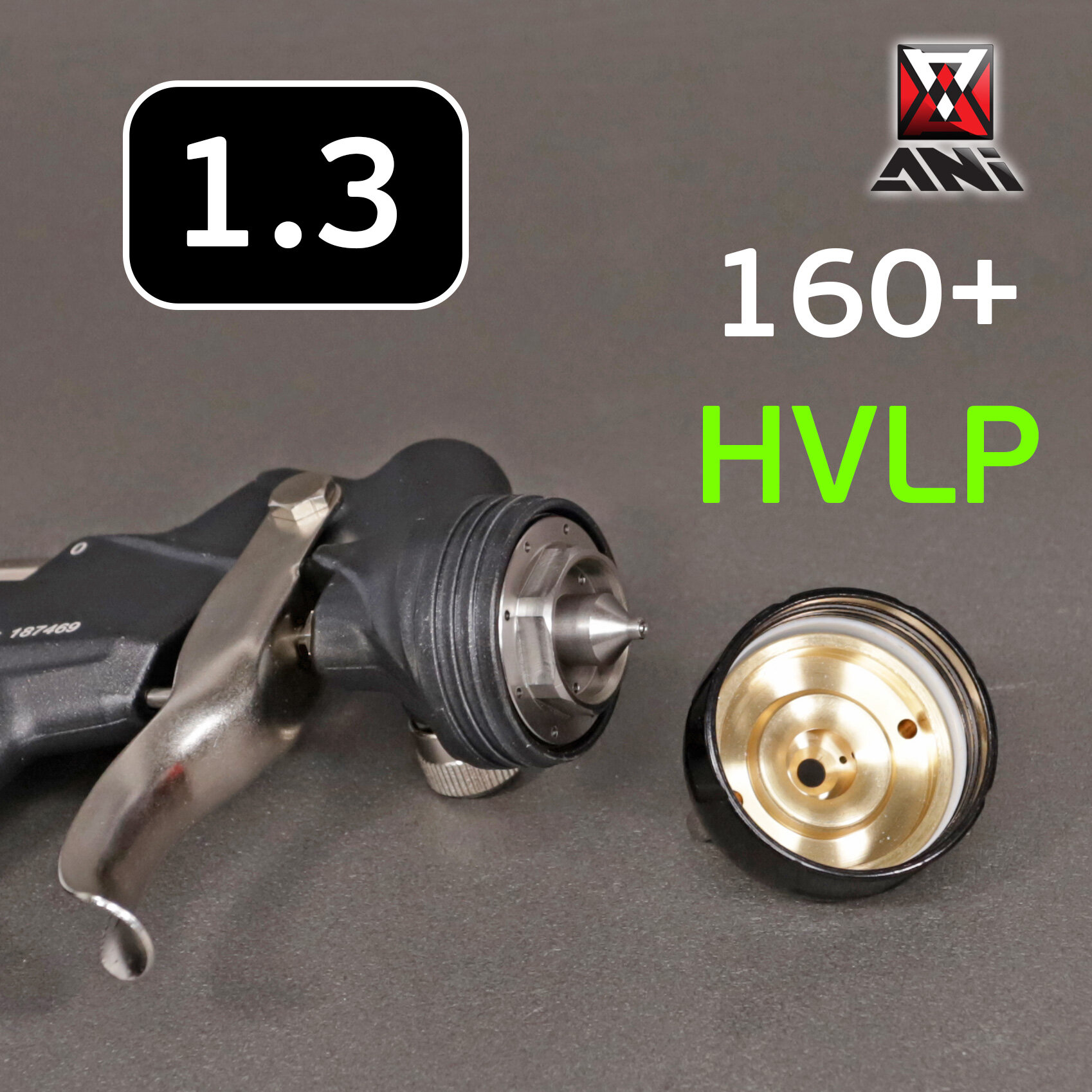 Купить Краскопульт ANI 160 Plus HVLP (1.3мм) черный с покрытием PTFE, верхний бачок 600мл