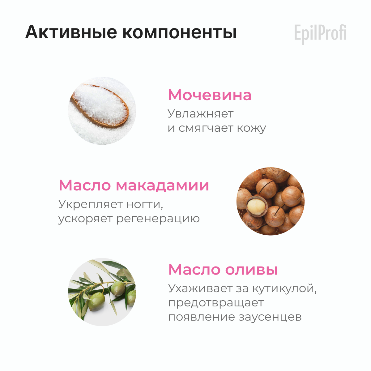 | Дополнительное действие | замедление роста кутикулы, питание, размягчение, ускорение роста ногтей |