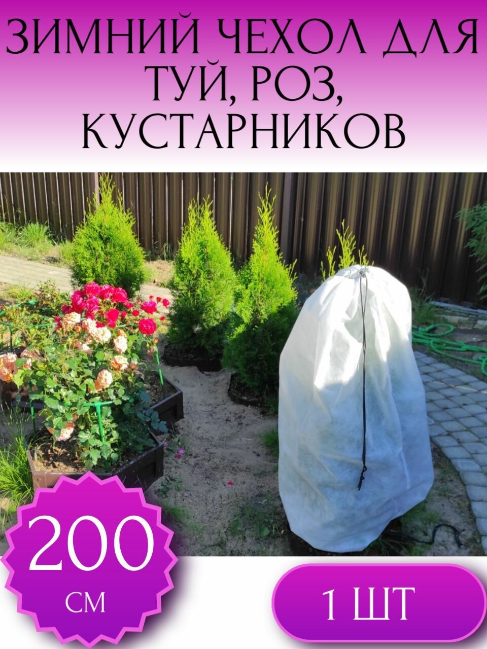 Зимний чехол на затяжках для туй и можевельников, для роз,для кустов и деревьев размер 200*80 см, 1 шт. интересное: