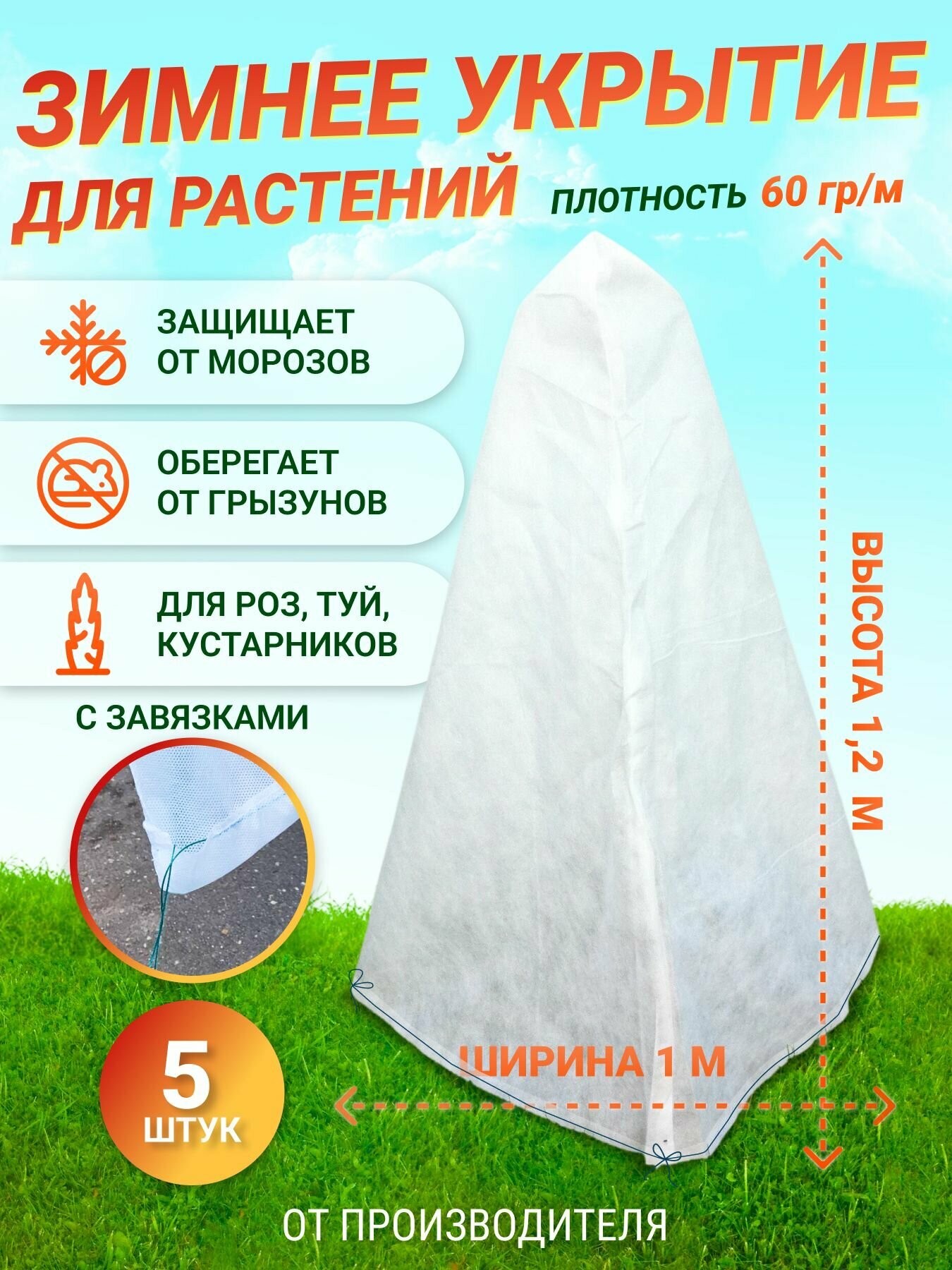 Укрывной материал для растений на зиму (Спанбонд) Чехол 1.2м высота, 5шт/Упаковка интересное: