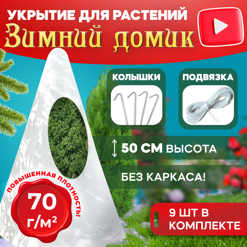 Укрытие для растений на зиму Зимний домик 50 см 70г/м2, 9 шт. Чехлы из спанбонда для роз и туй/Укрывной материал интересное: