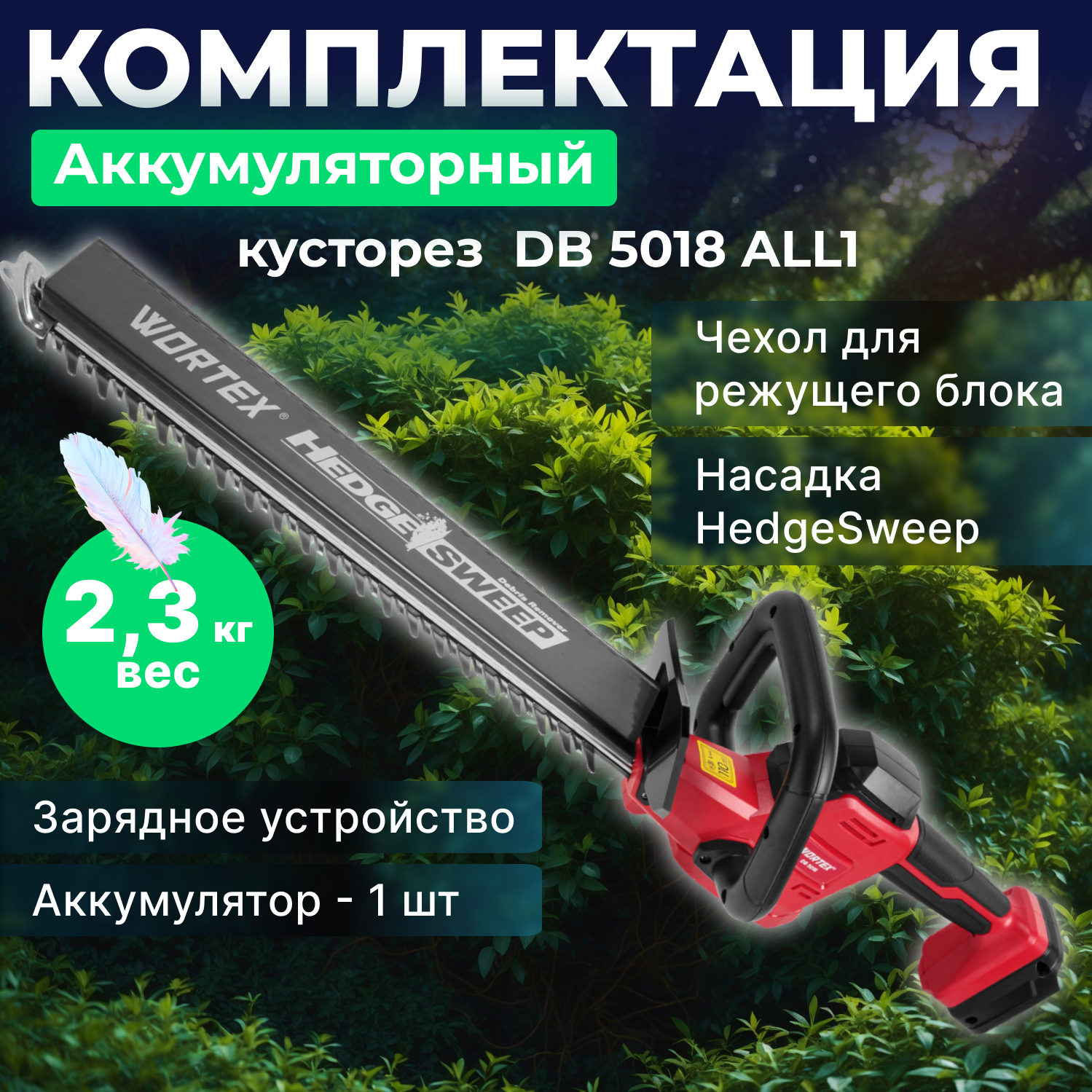 Купить Кусторез аккумуляторный садовый WORTEX DB 5018 ALL1 с АКБ и З/У (1334650)