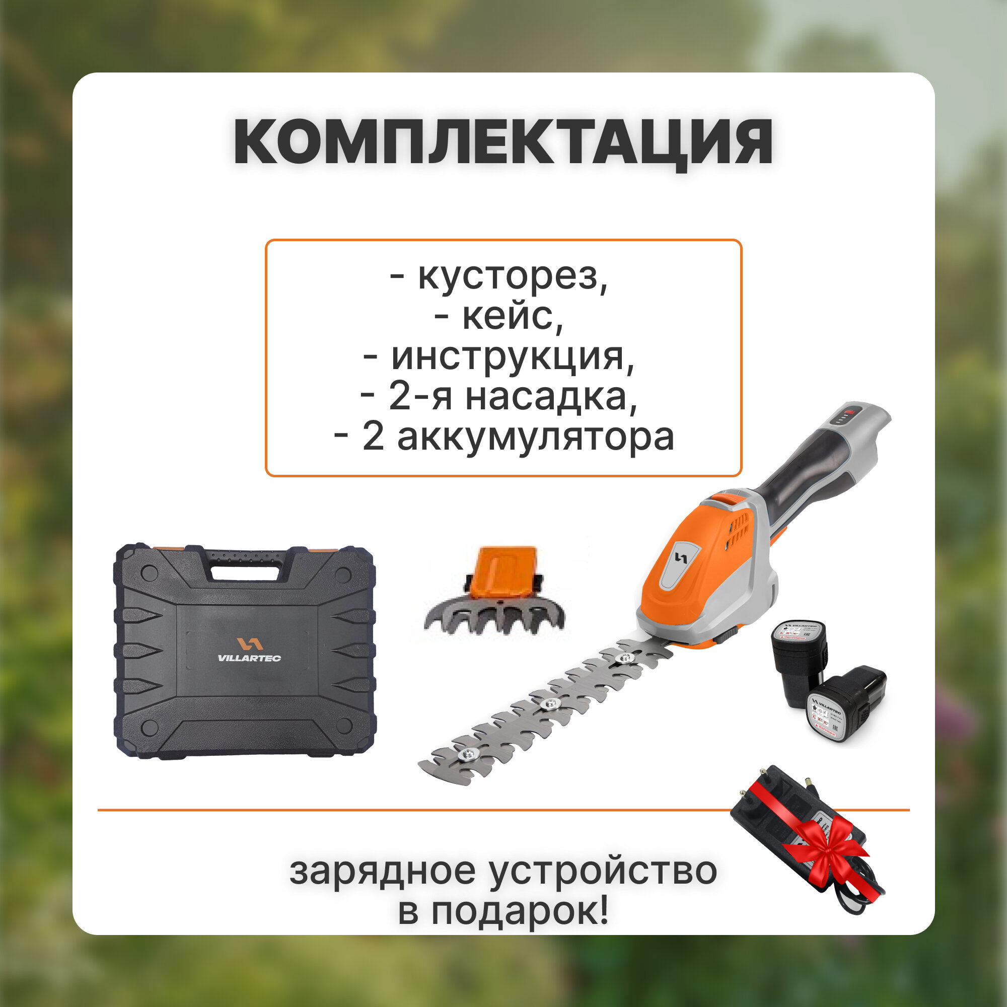 Кусторез аккумуляторный садовый, мотоножницы мини 14 В + аккумулятор + кейс + зарядное устройство / VILLARTEC HA1462 интересное: