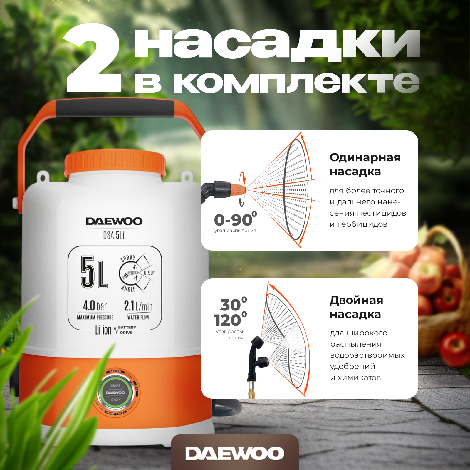 Купить Опрыскиватель аккумуляторный DAEWOO DSA 5 Li с АКБ 3 Ач и ЗУ