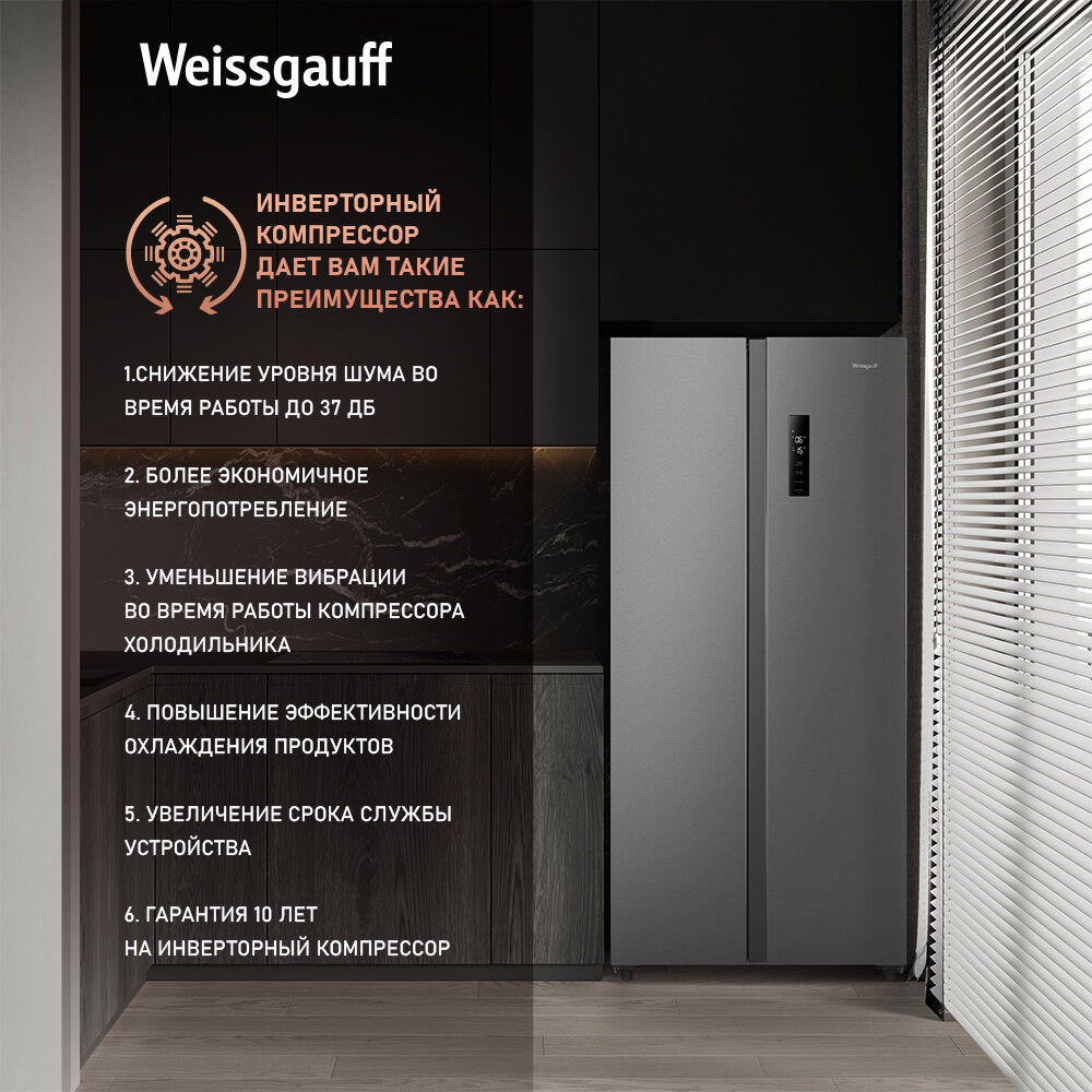 Холодильник side by side Weissgauff Wsbs 500 Inverter NoFrost Dark Grey