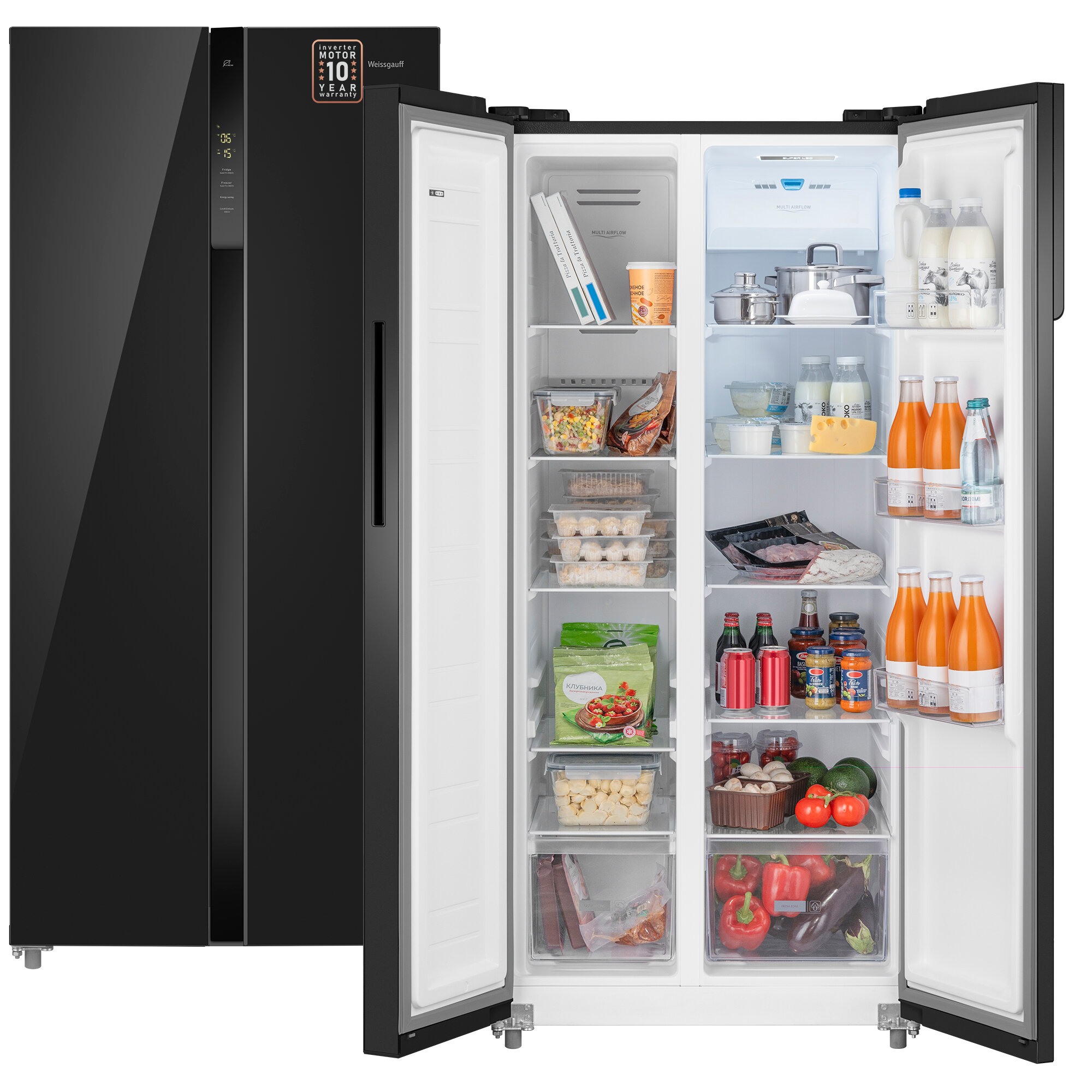 Купить Отдельностоящий холодильник Side by Side двухдверный WSBS 500 Inverter NoFrost Black Glass, 3 года гарантии, Полный No Frost, инвертор, Сенсорное управление, Цифровой дисплей, LED освещение, Большой общий объём 500 л, Тихий режим работы, A+