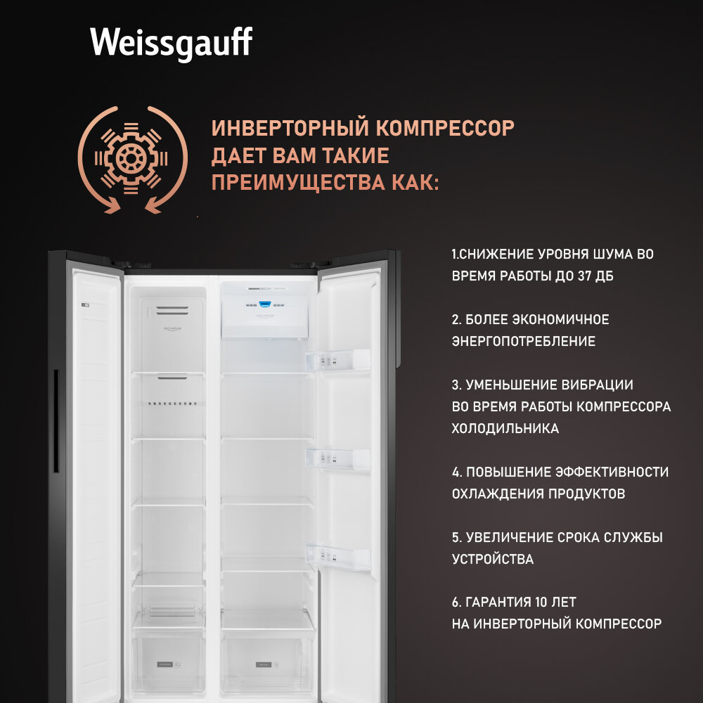 Холодильник side by side Weissgauff Wsbs 500 Inverter NoFrost Dark Grey