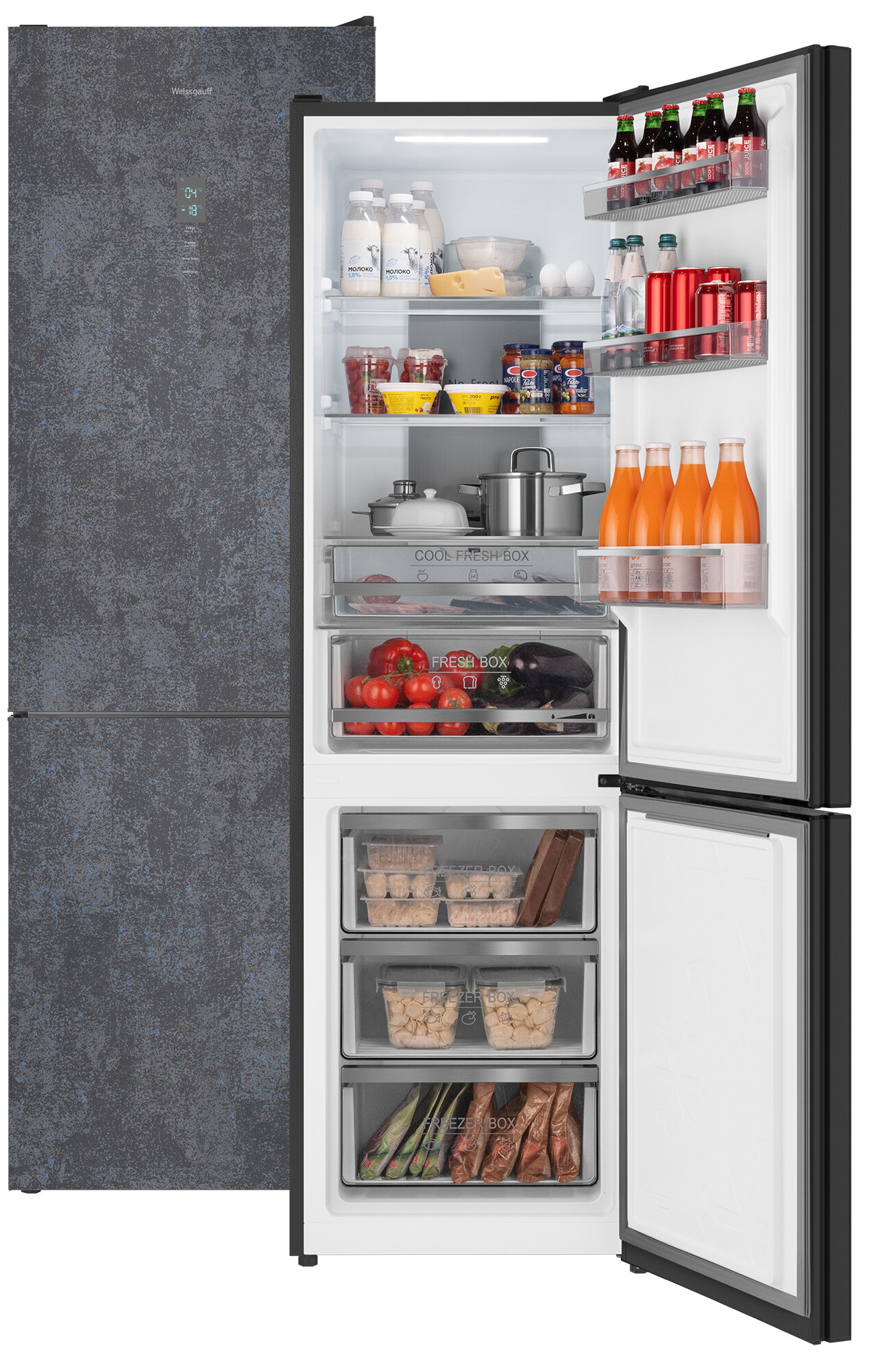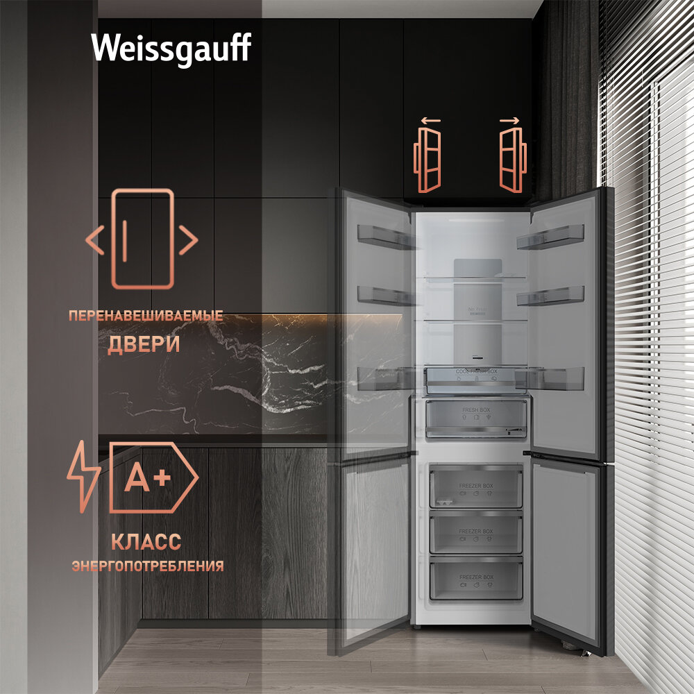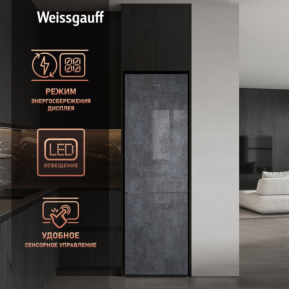 Холодильник Weissgauff WRK 195 D Full NoFrost Rock Glass двухкамерный ширина 60 см, LED освещение