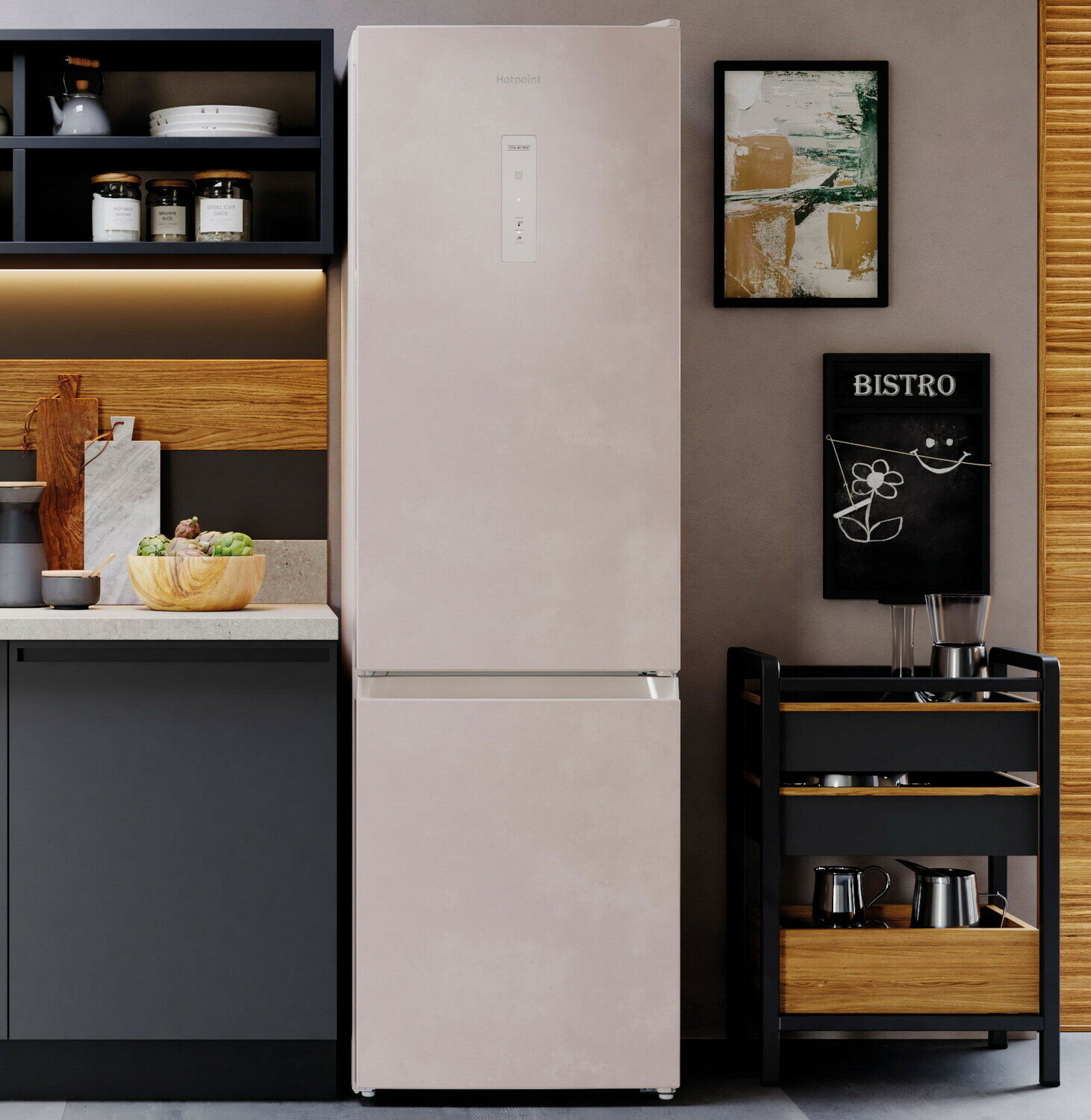 Холодильник Hotpoint HT 5200 AB мраморный, 196 см, No Frost, дисплей