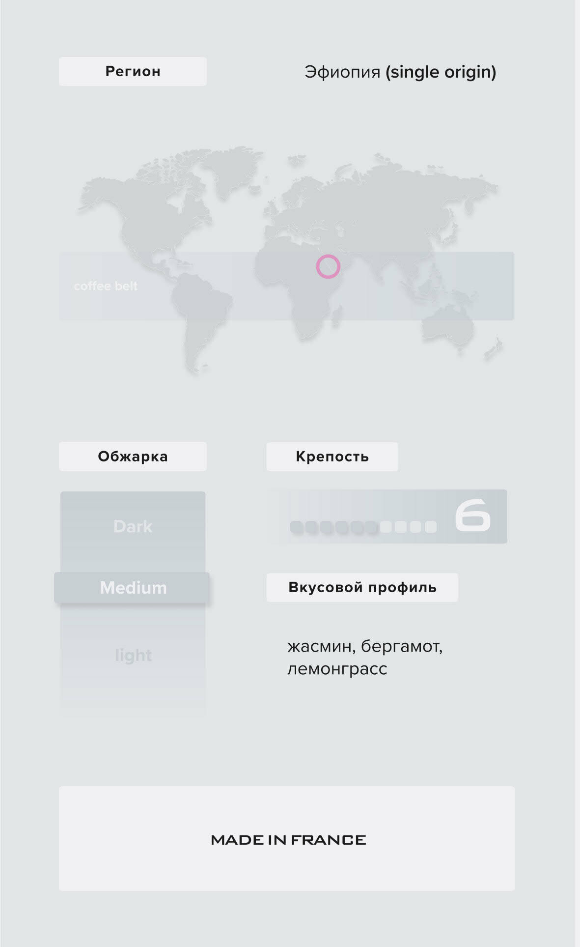 | Состав | Натуральный жареный молотый кофе в капсулах Egoiste Cafe Ethiopia. 100 % Арабика. Сорт Премиум. |