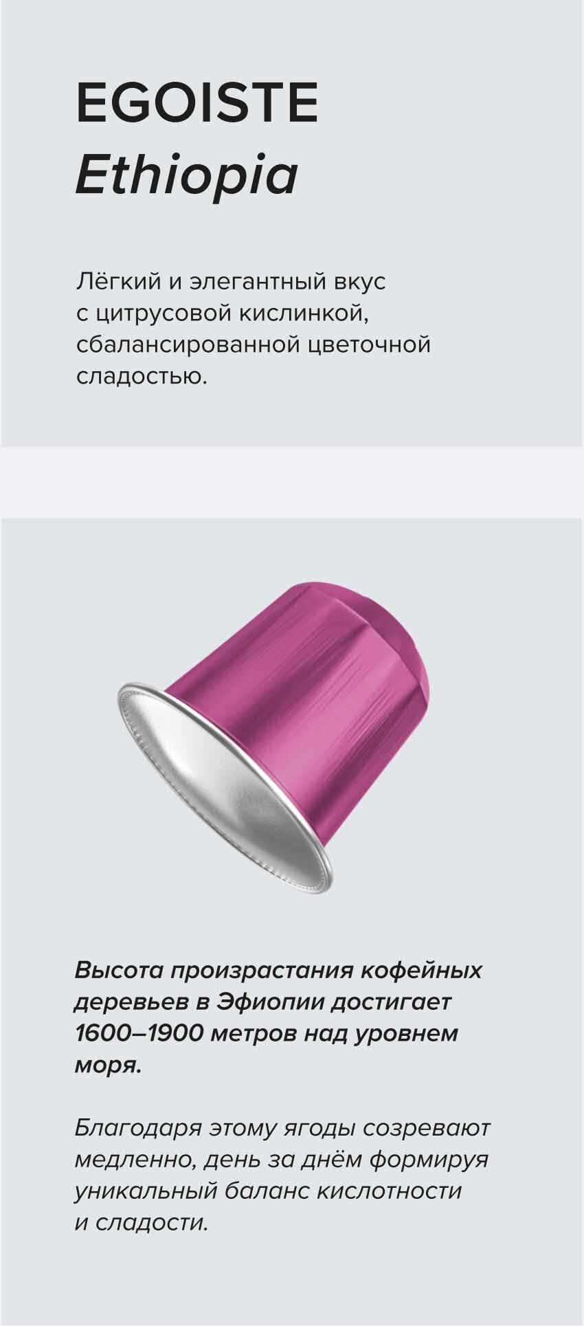 Кофе в капсулах Egoiste ETHIOPIA 10 капсул по 5 г (для кофемашин формата Nespresso) интересное: